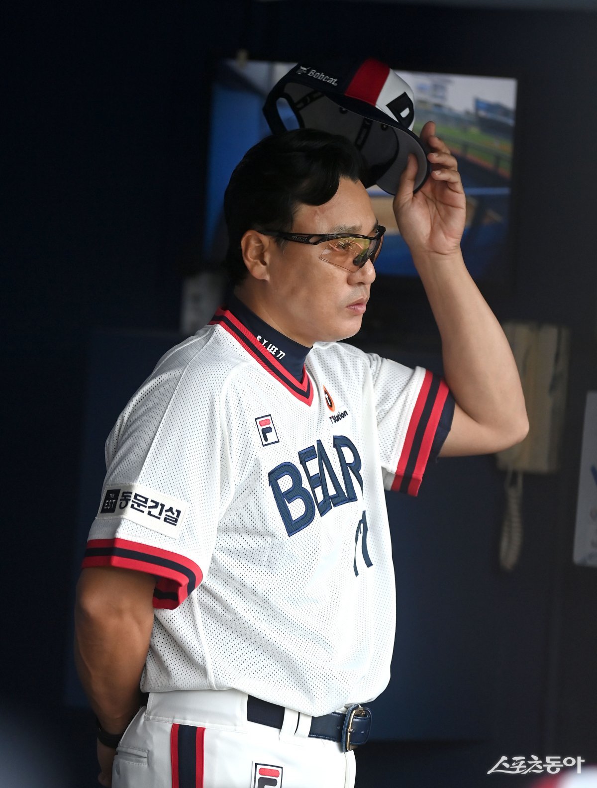 9일 서울 잠실야구장에서 ‘2023 신한은행 SOL KBO리그’ 키움 히어로즈와 두산 베어스 경기가 열렸다. 두산 이승엽 감독이 경기를 바라보고 있다.