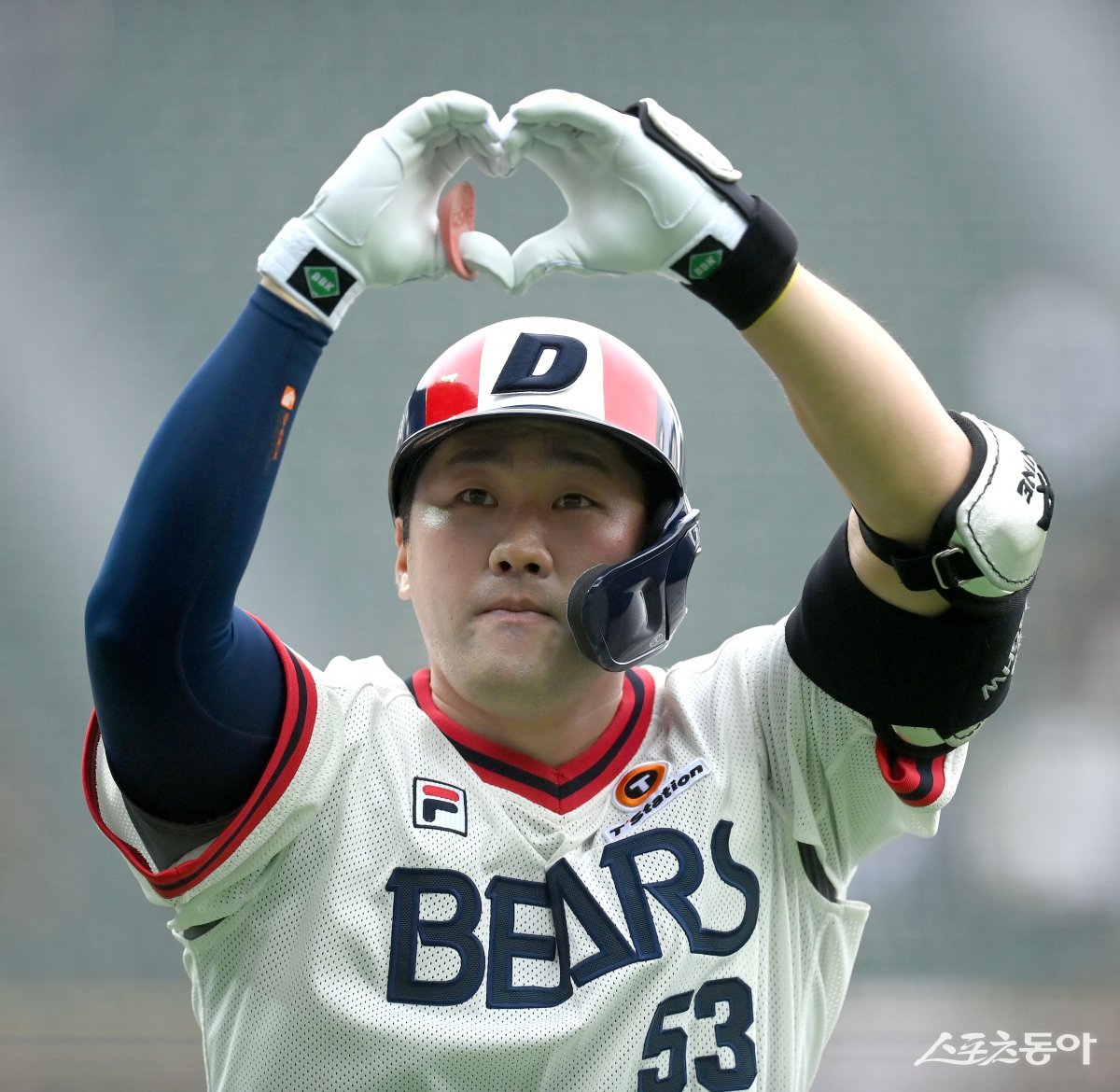 9일 서울 잠실야구장에서 ‘2023 신한은행 SOL KBO리그’ 키움 히어로즈와 두산 베어스 경기가 열렸다. 2회말 무사 두산 양석환이 좌월 솔로 홈런을 날리고 그라운드를 돌아 홈인해 기뻐하고 있다.