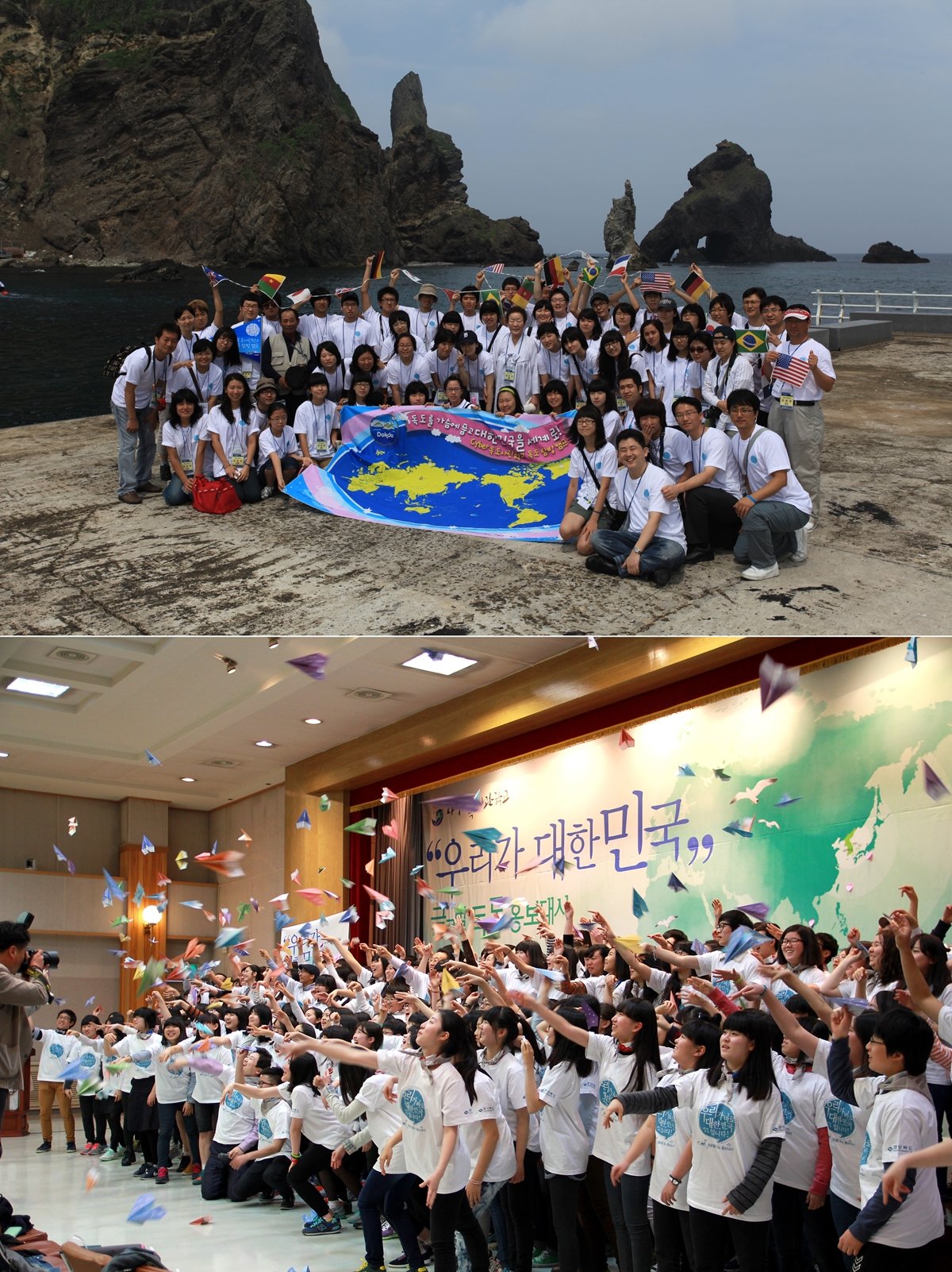 “우리가 반크, 우리가 대한민국!” 독도를 탐방한 반크 회원들(위 사진)과 글로벌 독도홍보대사 3기 발대식. 사진제공 | 반크