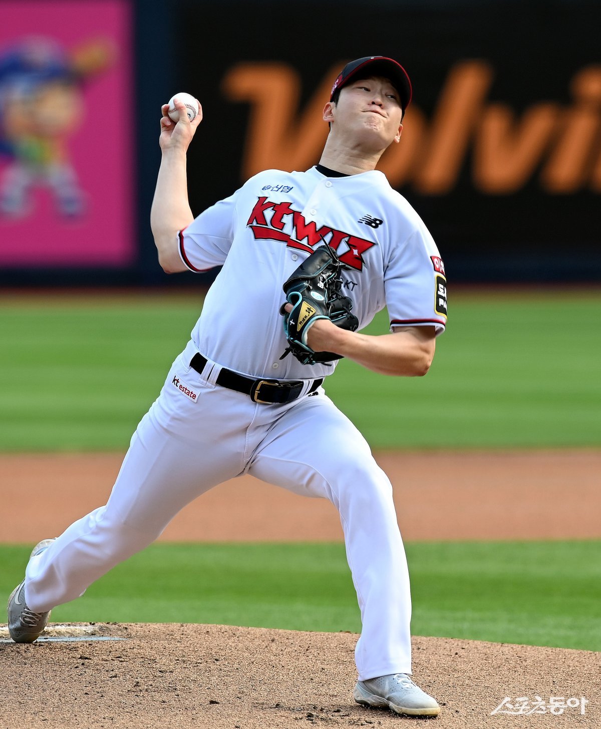9일 경기도 수원 kt위즈파크에서 ‘2023 신한은행 SOL KBO리그’ kt 위즈와 KIA 타이거즈의 경기가 열렸다. kt 선발투수 배제성이 힘차게 볼을 던지고 있다.