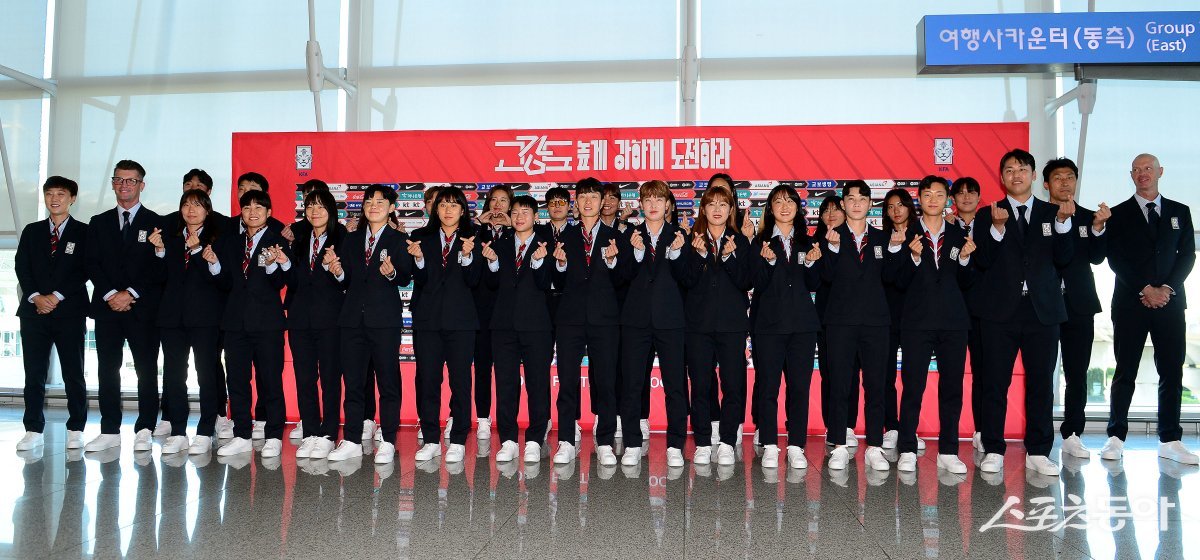 ‘2023 FIFA 호주-뉴질랜드 여자월드컵’에 출전하는 한국여자축구국가대표팀이 10일 인천국제공항을 통해 호주로 출국했다. 여자축구대표팀이 출국에 앞서 기념촬영을 하고 있다.