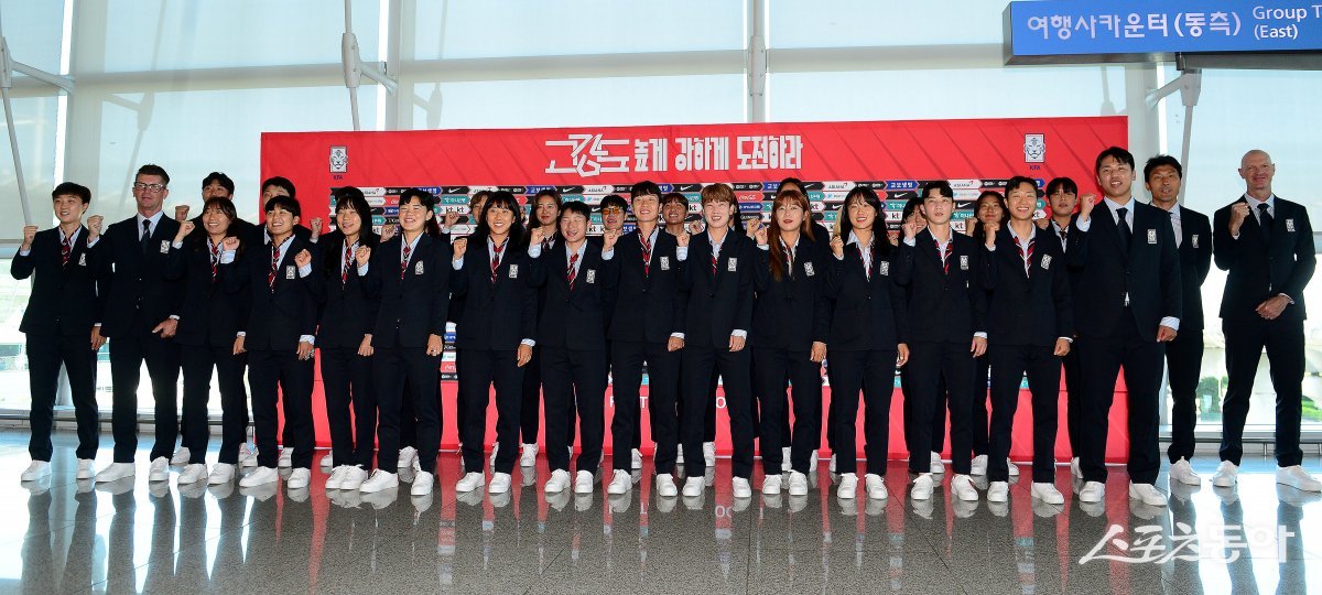 ‘2023 FIFA 호주-뉴질랜드 여자월드컵’에 출전하는 한국여자축구국가대표팀이 10일 인천국제공항을 통해 호주로 출국했다. 여자축구대표팀이 출국에 앞서 기념촬영을 하고 있다.
