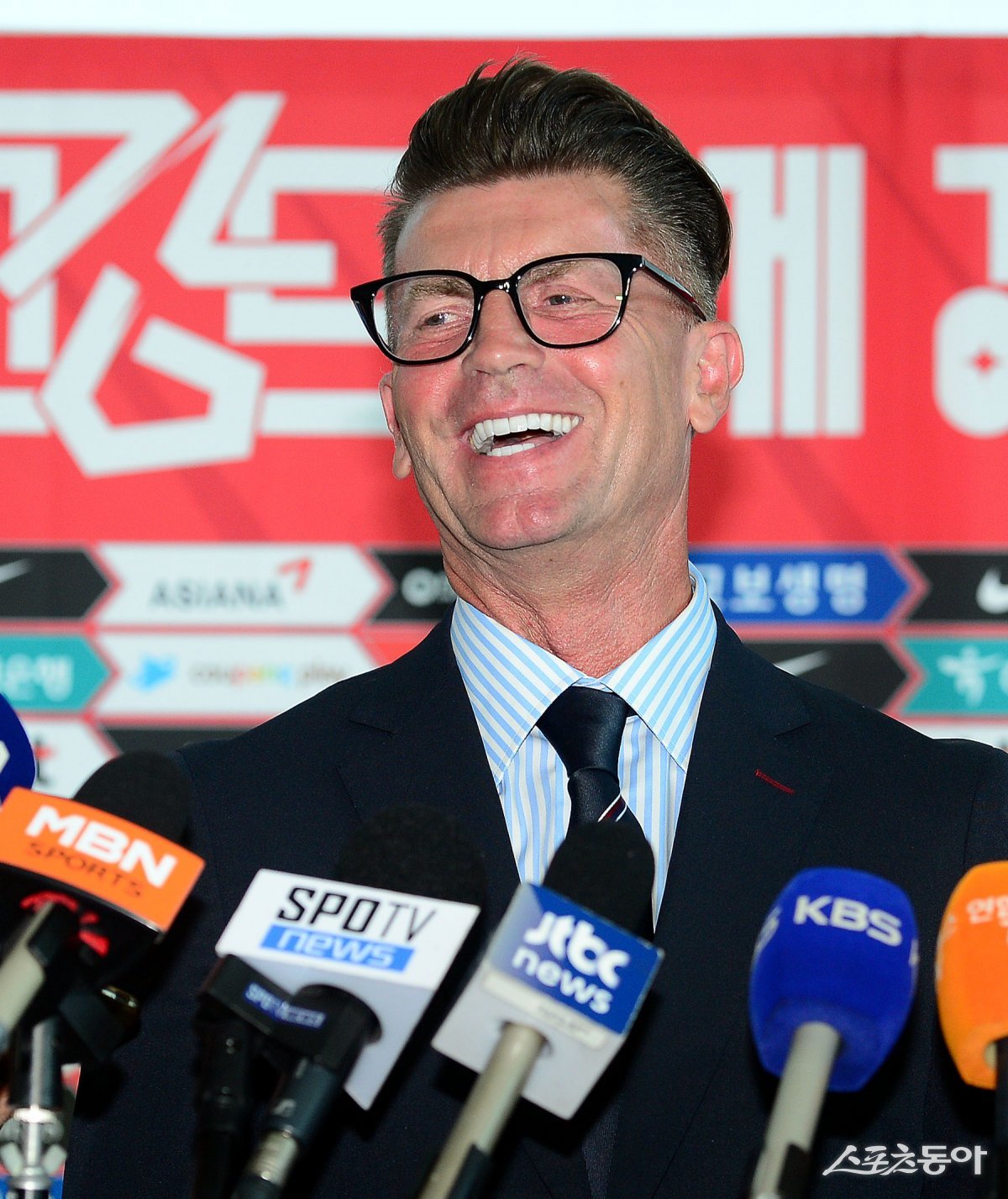 ‘2023 FIFA 호주-뉴질랜드 여자월드컵’에 출전하는 한국여자축구국가대표팀이 10일 인천국제공항을 통해 호주로 출국했다. 여자축구대표팀 콜린 벨 감독이 미소를 지으며 인터뷰를 하고 있다.