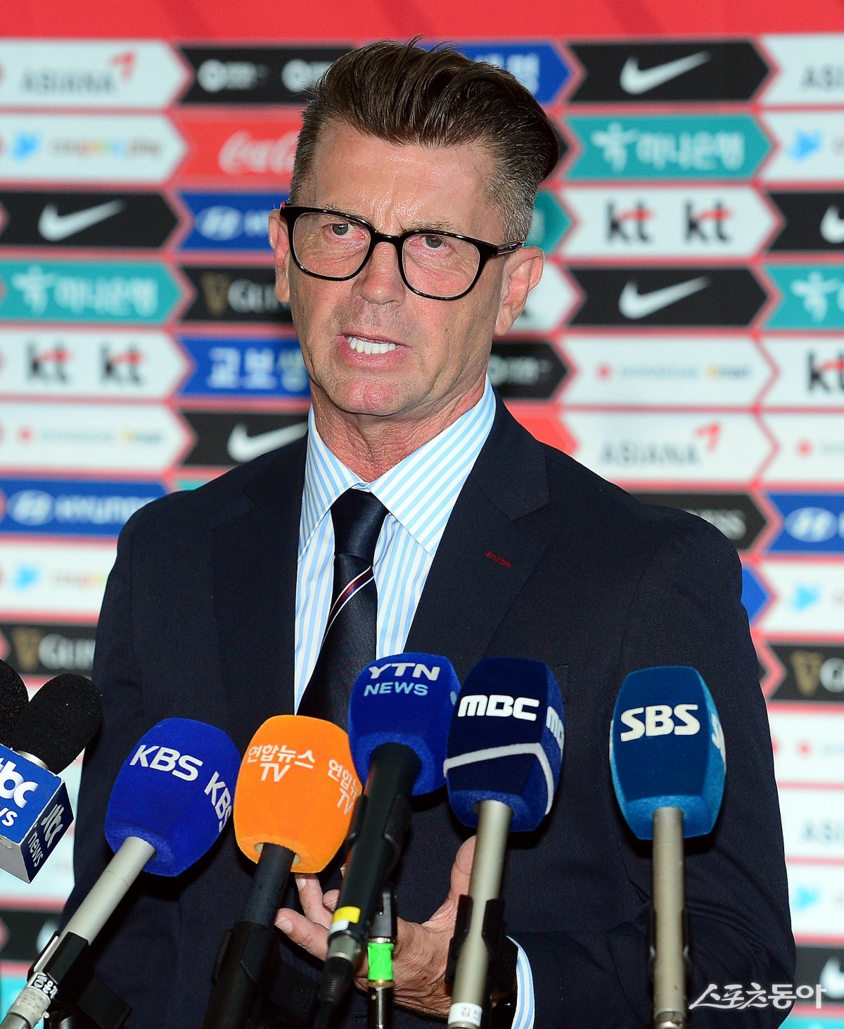 ‘2023 FIFA 호주-뉴질랜드 여자월드컵’에 출전하는 한국여자축구국가대표팀이 10일 인천국제공항을 통해 호주로 출국했다. 여자축구대표팀 콜린 벨 감독이 인터뷰를 하고 있다.