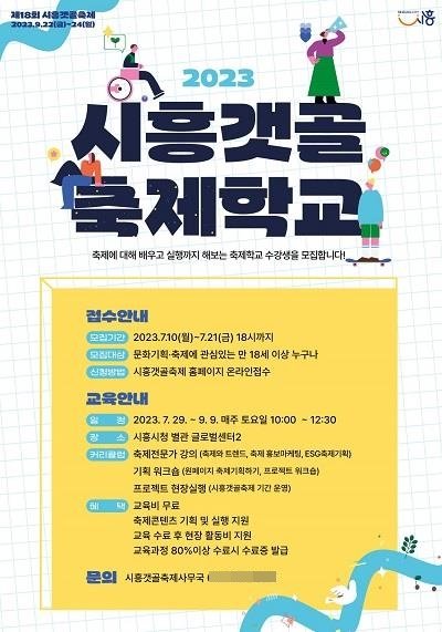 시흥갯골축제학교는 전문적인 축제 기획자 양성하기 위해 기획됐다. 프로그램은 시청 글로벌센터에서 오는 29일부터 9월 9일까지 매주 토요일 10시 열린다.