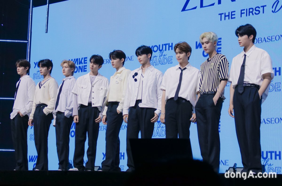 그룹 제로베이스원(ZEROBASEONE)이 10일 오후 서울 광장동 예스24 라이브홀에서 진행된 첫 번째 미니앨범 '유스 인 더 셰이드(YOUTH IN THE SHADE)' 발매 기념 데뷔 쇼케이스 포토타임에서 포즈를 취하고 있다.