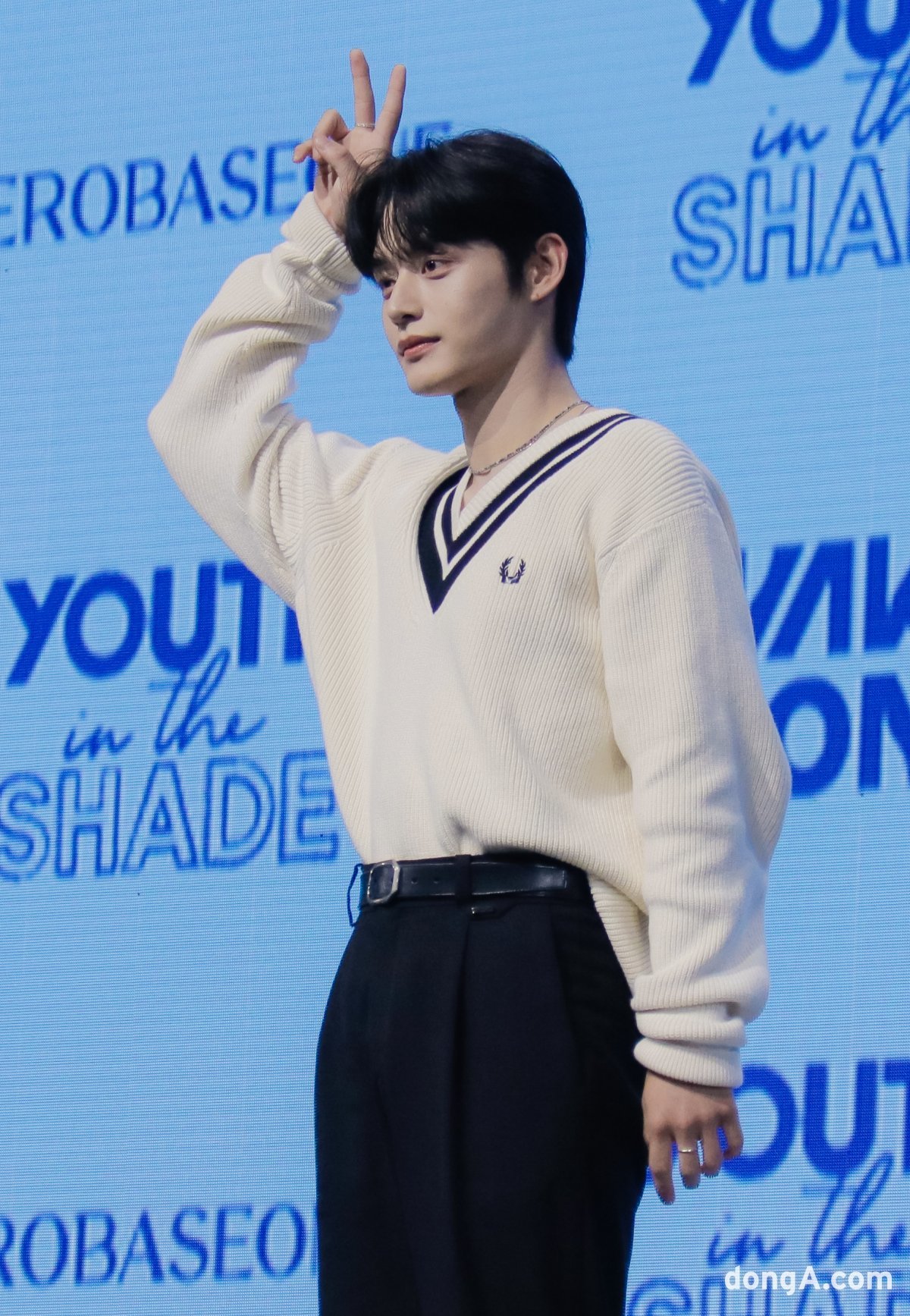 그룹 제로베이스원(ZEROBASEONE) 김지웅이 10일 오후 서울 광장동 예스24 라이브홀에서 진행된 첫 번째 미니앨범 '유스 인 더 셰이드(YOUTH IN THE SHADE)' 발매 기념 데뷔 쇼케이스 포토타임에서 포즈를 취하고 있다.