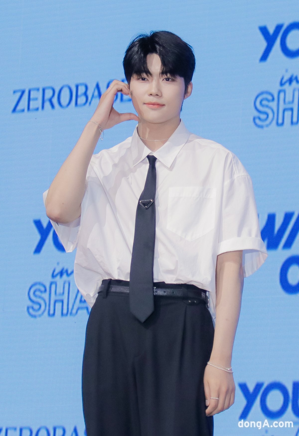 그룹 제로베이스원(ZEROBASEONE) 박건욱이 10일 오후 서울 광장동 예스24 라이브홀에서 진행된 첫 번째 미니앨범 '유스 인 더 셰이드(YOUTH IN THE SHADE)' 발매 기념 데뷔 쇼케이스 포토타임에서 포즈를 취하고 있다.