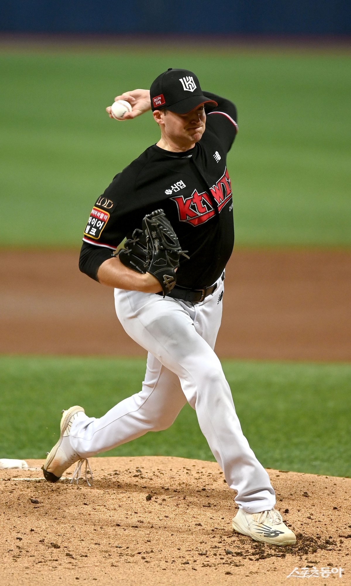 11일 서울 고척스카이돔에서 ‘2023 신한은행 SOL KBO리그’ KT 위즈와 키움 히어로즈 경기가 열렸다. 선발 투수로 등판한 KT 벤자민이 역투하고 있다.