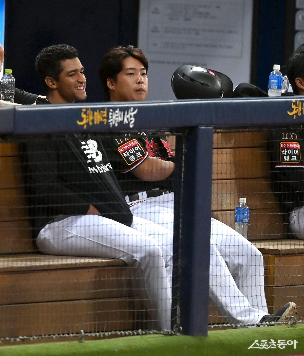11일 서울 고척스카이돔에서 ‘2023 신한은행 SOL KBO리그’ KT 위즈와 키움 히어로즈 경기가 열렸다. 1군에 복귀한 KT 강백호가 경기를 바라보고 있다.