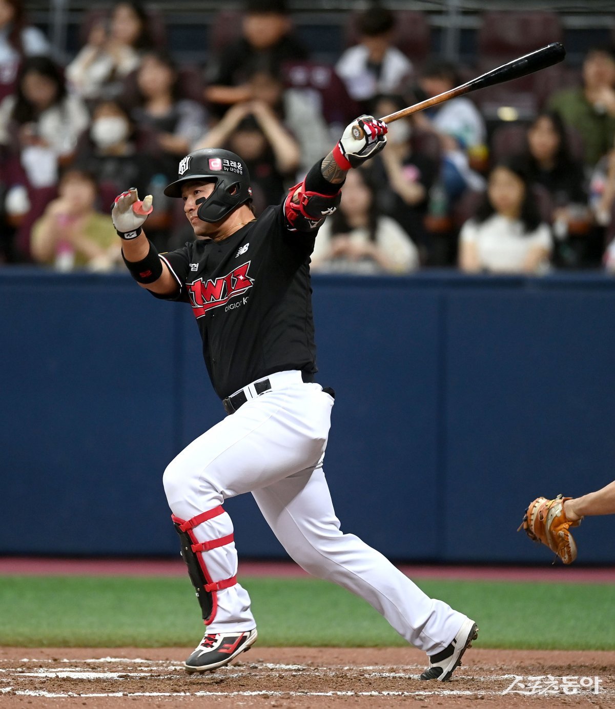 11일 서울 고척스카이돔에서 ‘2023 신한은행 SOL KBO리그’ KT 위즈와 키움 히어로즈 경기가 열렸다. 7회초 무사 KT 박병호가 좌전 안타를 치고 있다.