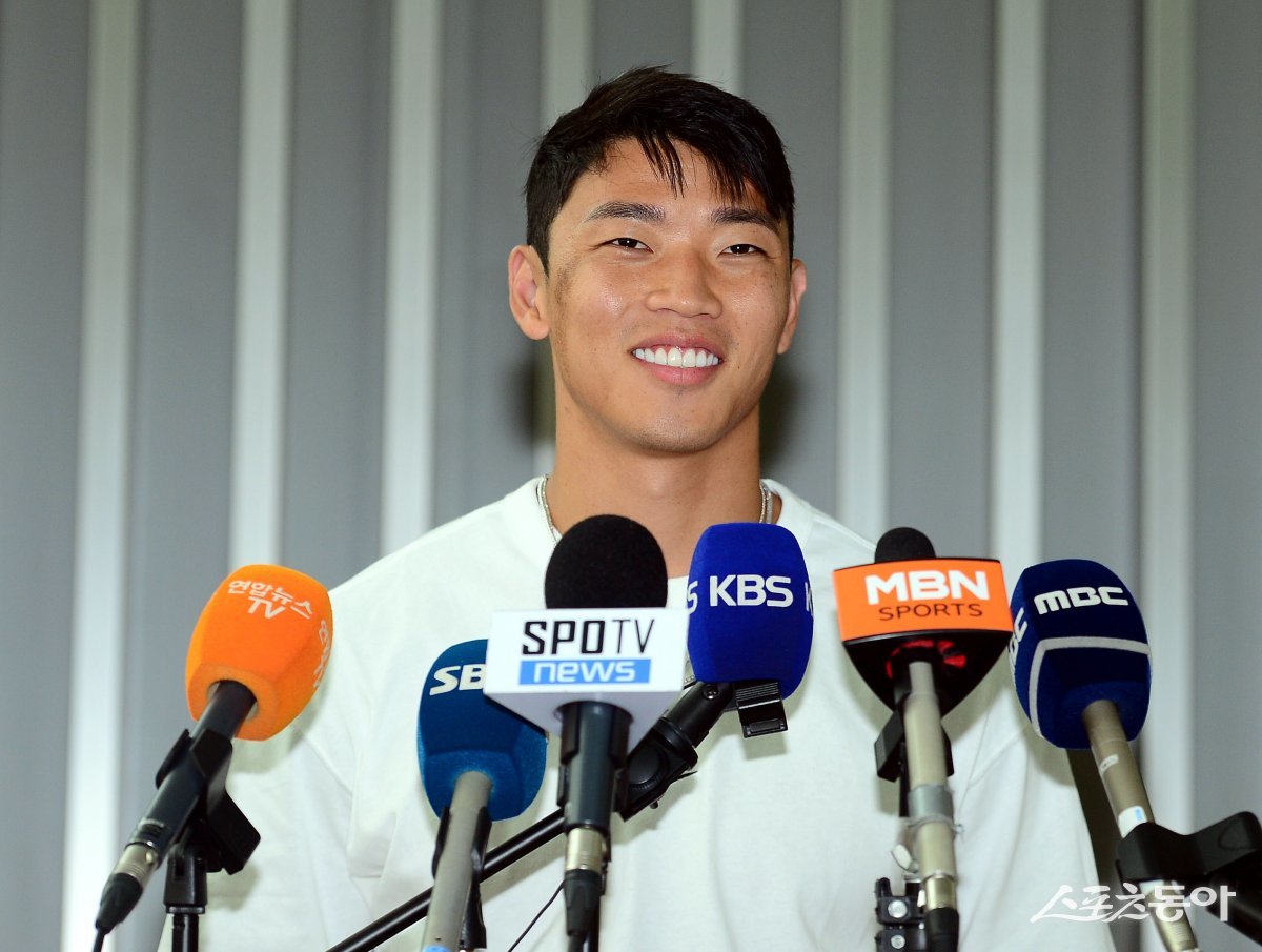 EPL 울버햄프턴 소속의 황희찬이 소속팀 훈련 합류를 위해 12일 인천국제공항을 통해 영국 런던으로 출국했다. 출국에 앞서 황희찬이 새 시즌에 대해 소감을 밝히고 있다.