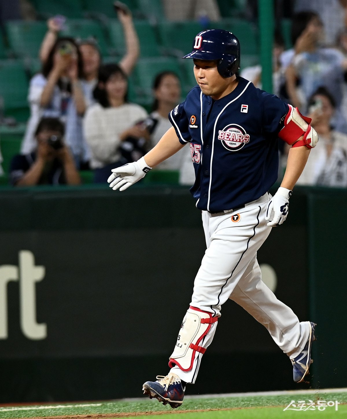 12일 인천 SSG 랜더스필드에서 ‘2023 신한은행 SOL KBO리그’ SSG 랜더스와 두산 베어스의 경기가 열렸다. 8회초 무사에서 두산 양의지가 솔로 홈런을 쏘아 올린 후 그라운드를 돌며 환호하고 있다.