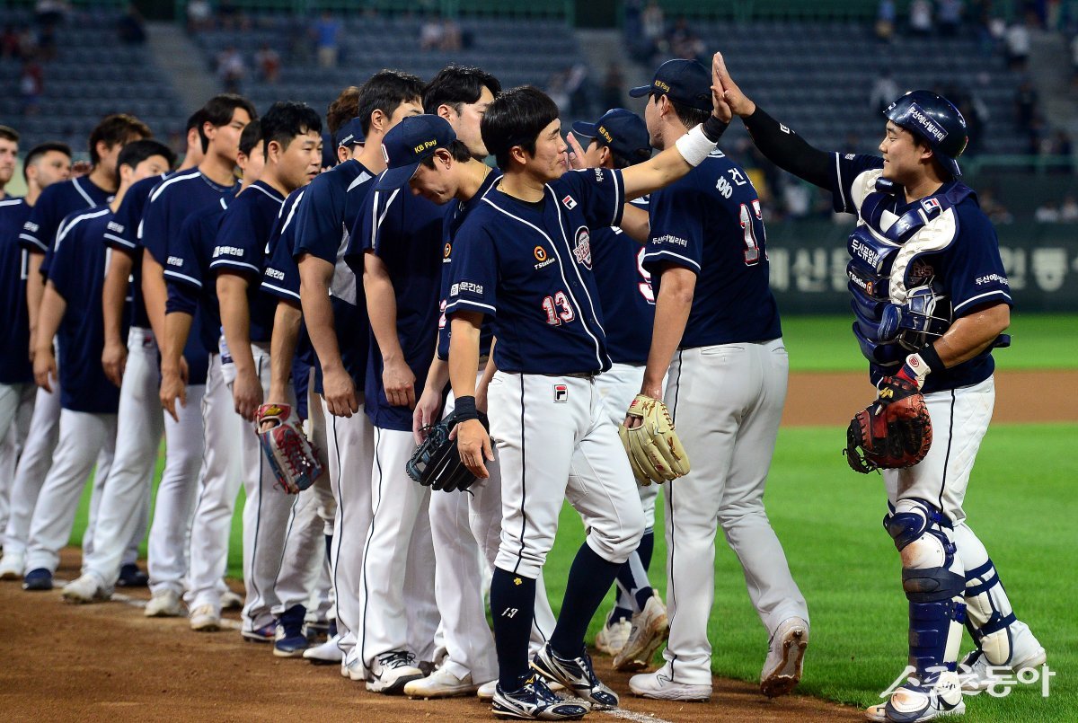 12일 인천 SSG 랜더스필드에서 ‘2023 신한은행 SOL KBO리그’ SSG 랜더스와 두산 베어스의 경기가 열렸다. 두산이 SSG를 상대로 4-1로 승리하며 9연승을 기록한 후 선수들이 그라운드에서 기쁨을 나누고 있다.