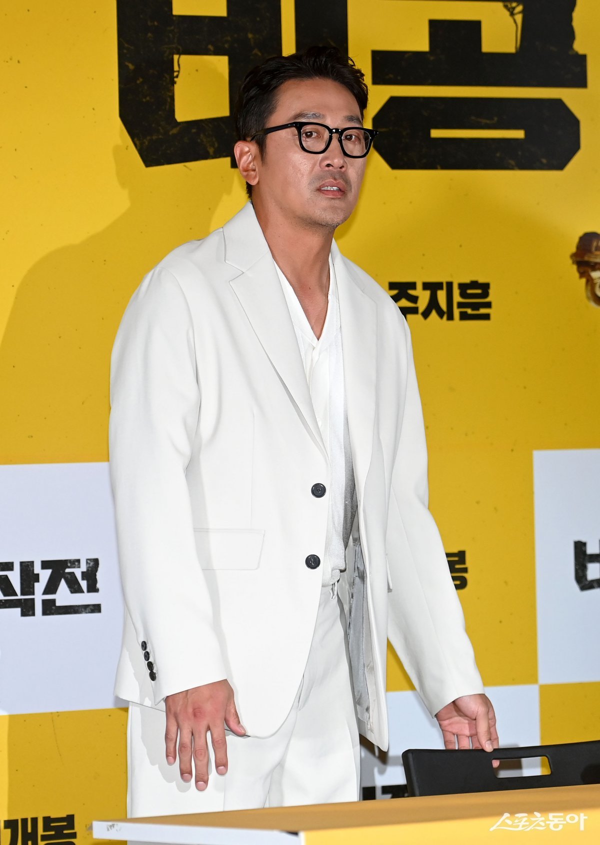 배우 하정우가 13일 서울 강남구 메가박스 코엑스점에서 열린 영화 ‘비공식작전’ 시사회에서 입장하고 있다.