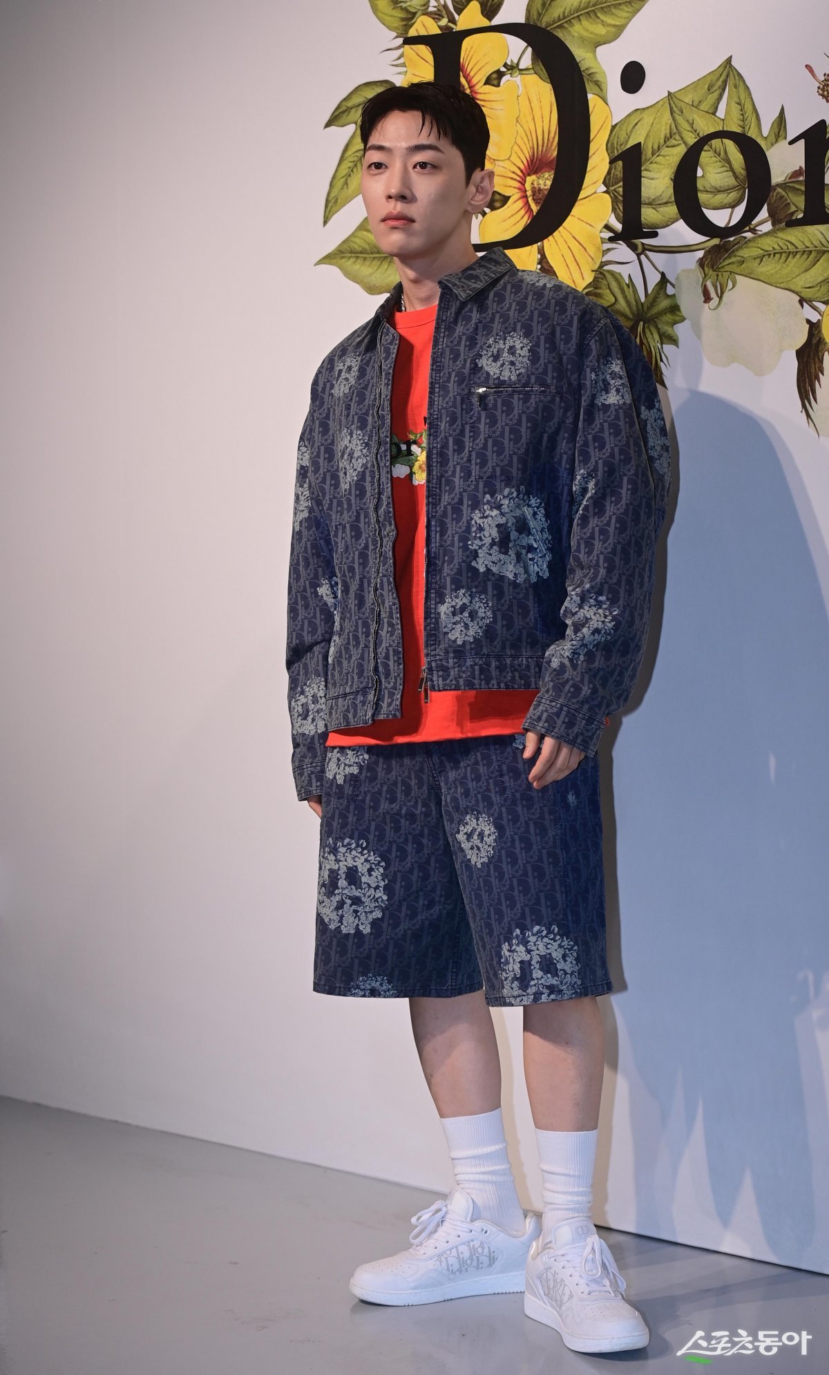 래퍼 그레이가 13일 서울 성동구 성수동 한 스튜디오에서 열린 프랑스 패션 브랜드의 팝업스토어 오픈 포토월에서 포즈를 취하고 있다.
