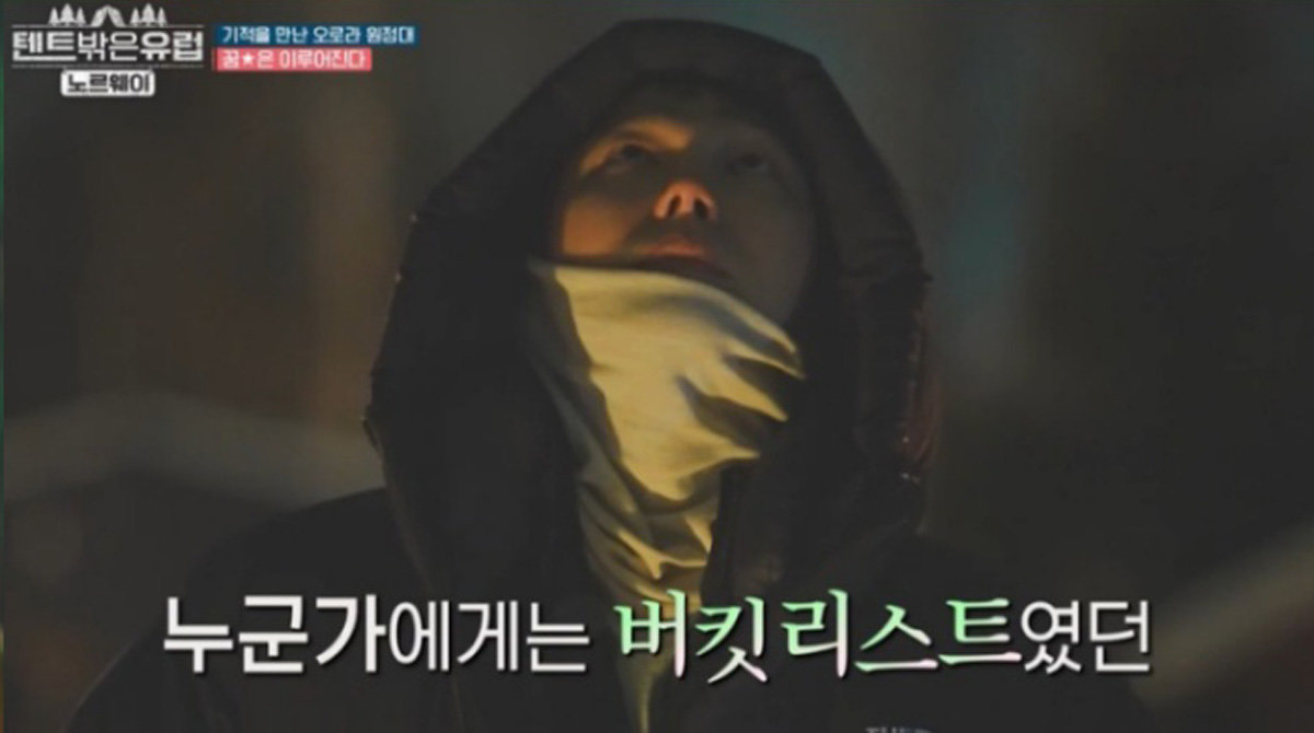 13일 방송된 \'텐트 밖은 유럽 - 노르웨이 편\' 최종회에서는 오로라의 도시 트롬쇠로 향한 멤버들의 마지막 여정이 그려졌다. 포기를 모르는 멤버들의 간절함에 오로라가 기적처럼 자태를 드러냈고, 여정의 끝자락에서 마주한 오로라의 빛깔은 더욱 찬란하게 다가왔다.