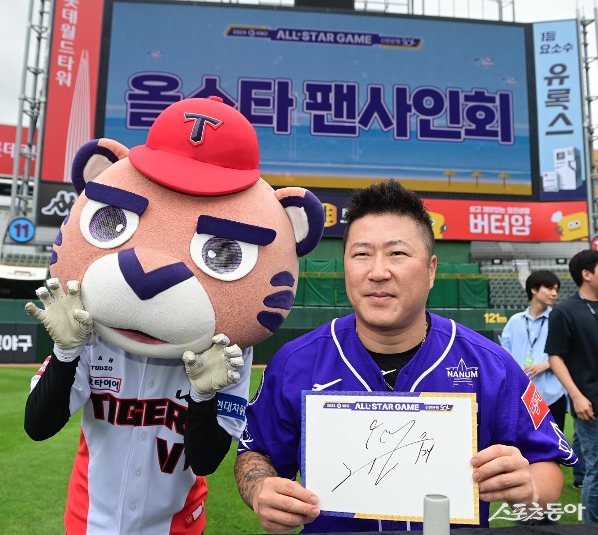 15일 부산 사직야구장에서 ‘2023 신한은행 SOL KBO 올스타전’ 드림 올스타와 나눔 올스타의 경기에 앞서 올스타 팬사인회가 열렸다. KIA 최형우가 포즈를 취하고 있다.