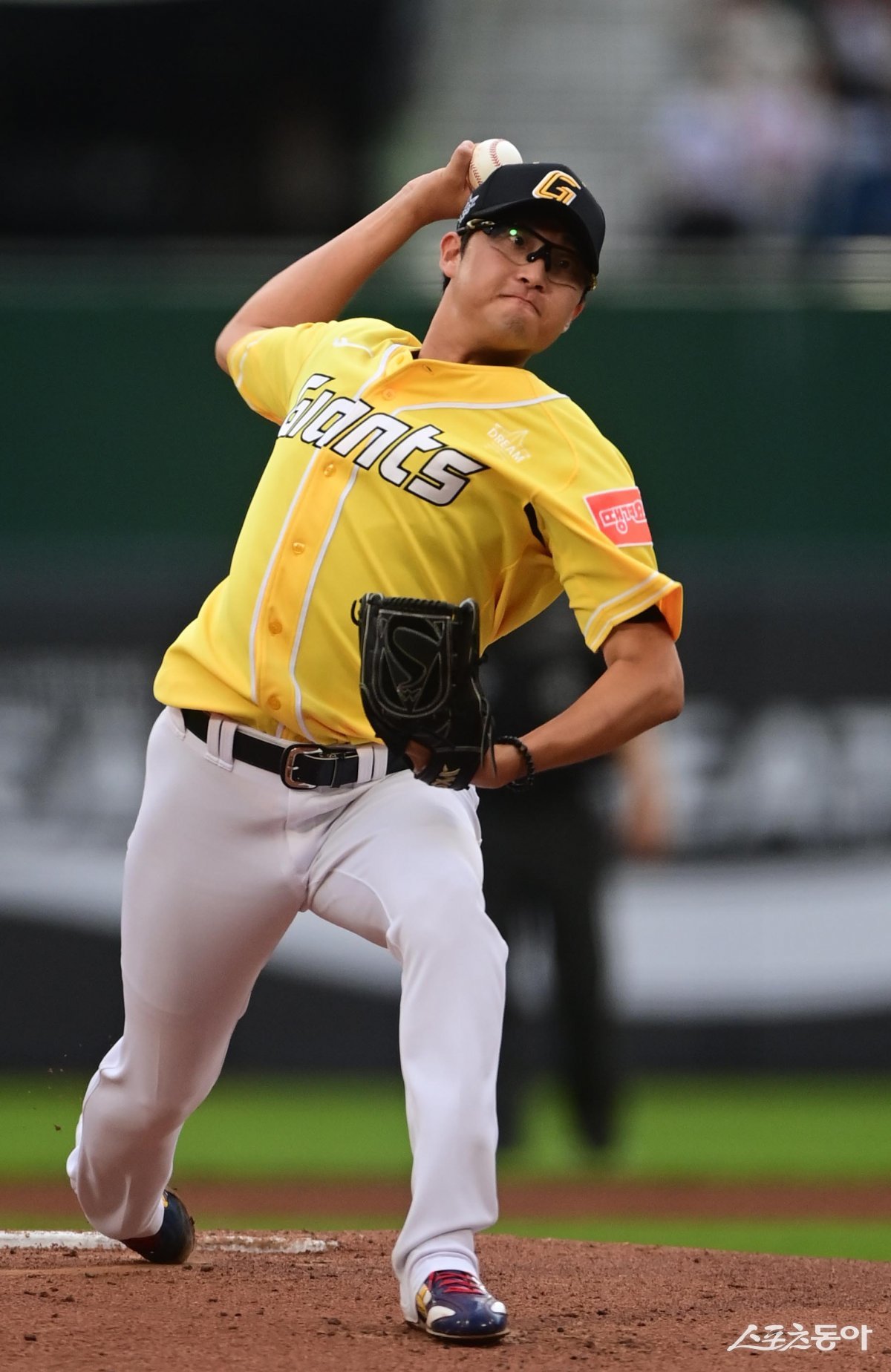 15일 부산 사직야구장에서 열린 ‘2023 신한은행 SOL KBO 올스타전’ 드림 올스타와 나눔 올스타의 경기에서 선발 투수로 마운드에 오른 드림 박세웅이 역투하고 있다.