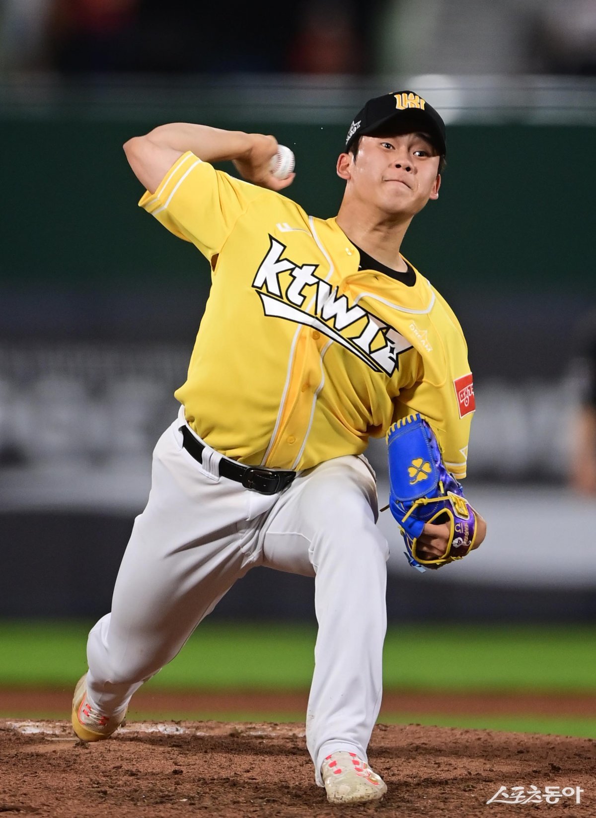 15일 부산 사직야구장에서 열린 ‘2023 신한은행 SOL KBO 올스타전’ 드림 올스타와 나눔 올스타의 경기에서 7회말 KT 박영현이 교체로 마운드에 올라 역투하고 있다.