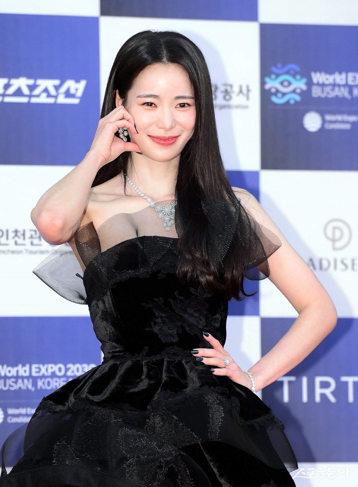 제2회 청룡시리즈어워즈 레드카펫 행사가 19일 인천 영종도 파라다이스시티에서 열렸다.배우 임지연이 카메라를 향해 포즈를 취하고 있다.