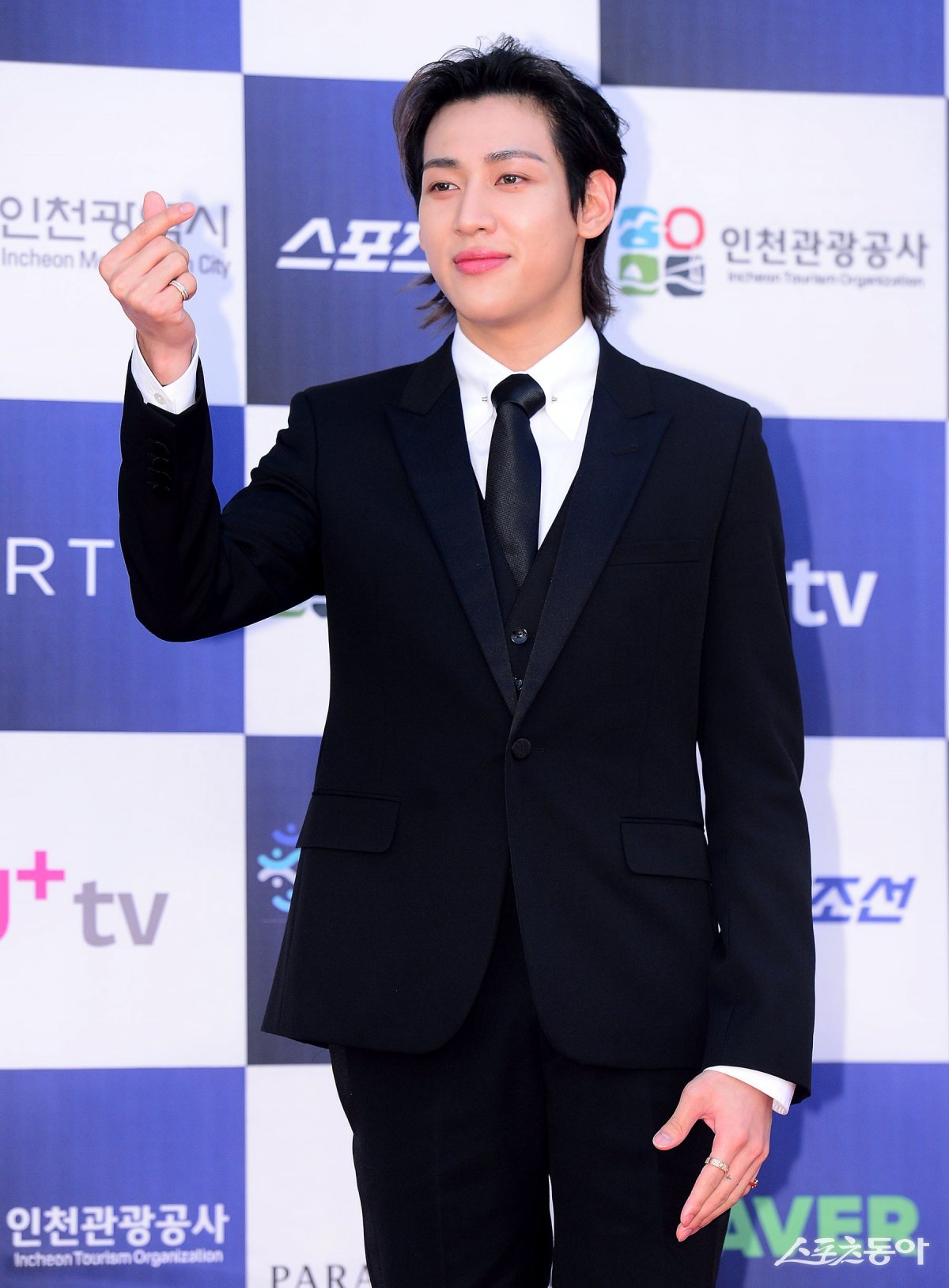 제2회 청룡시리즈어워즈 레드카펫 행사가 19일 인천 영종도 파라다이스시티에서 열렸다.방송인 뱀뱀이 카메라를 향해 포즈를 취하고 있다.