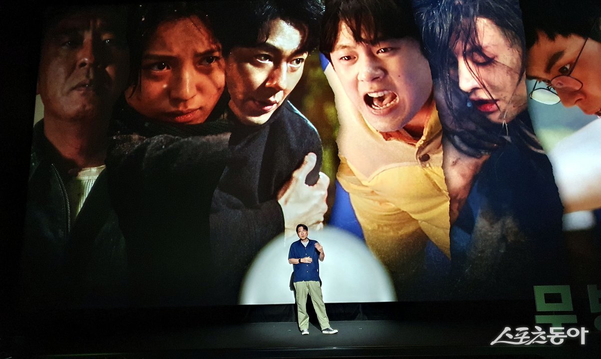 20일 서울 용산구 CGV 아이파크몰에서 디즈니+ 오리지널 시리즈 ‘무빙’ Creators Talk 행사가 열렸다. 박인제 감독이 작품에 대해 설명하고 있다.