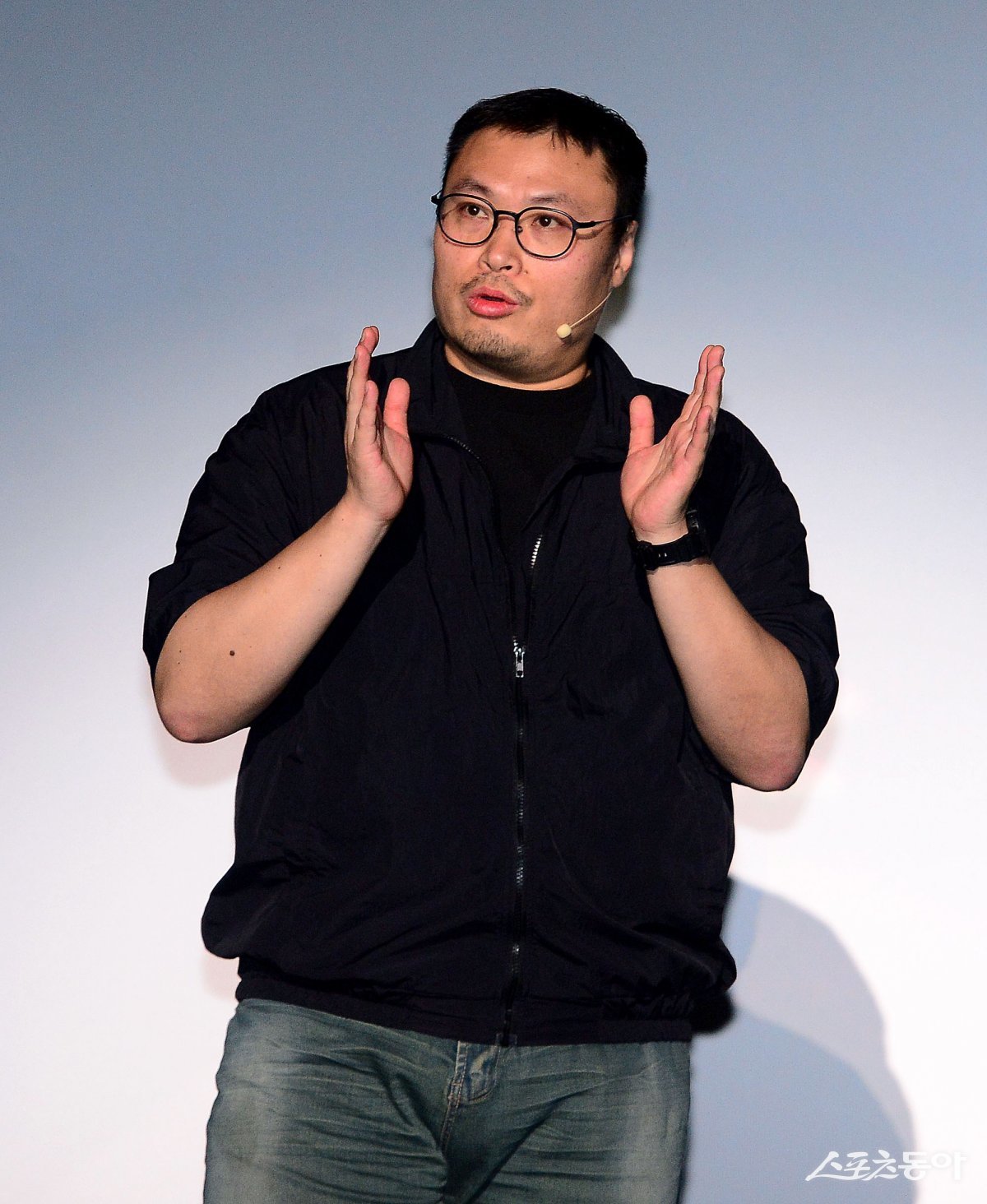 20일 서울 용산구 CGV 아이파크몰에서 디즈니+ 오리지널 시리즈 ‘무빙’ Creators Talk 행사가 열렸다. 원작 웹툰 강풀 작가가 작품에 대해 설명하고 있다.