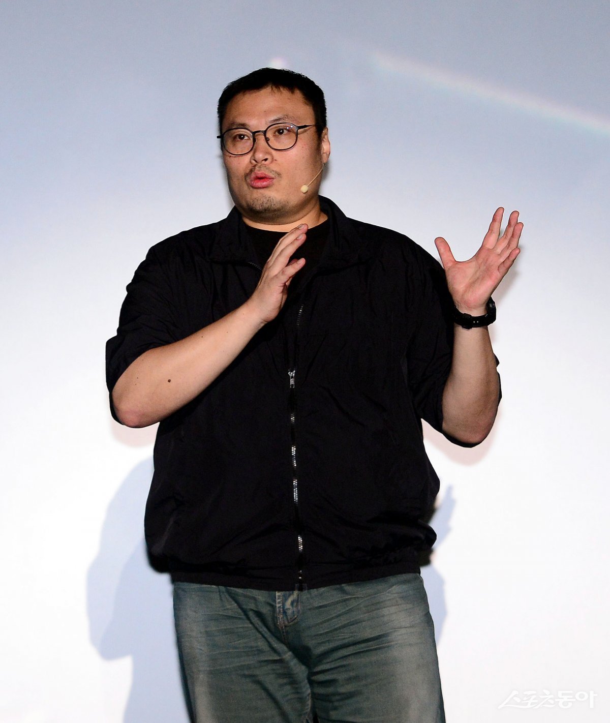20일 서울 용산구 CGV 아이파크몰에서 디즈니+ 오리지널 시리즈 ‘무빙’ Creators Talk 행사가 열렸다. 원작 웹툰 강풀 작가가 작품에 대해 설명하고 있다.