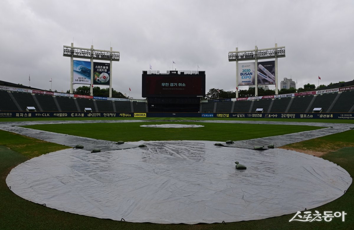 KBO리그는 8월부터 순연경기를 월요일에 소화한다. 자칫 7∼8연전을 치러야 할 팀들로선 선발투수 확보가 당면과제다. 23일 SSG-LG전이 우천순연된 잠실구장. 잠실 | 주현희 기자 teth1147@donga.com