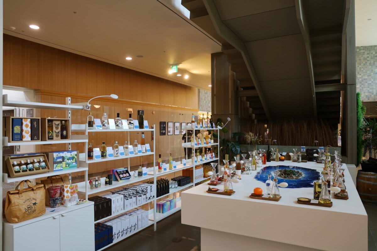 한화리조트는 제주 전통주의 우수함을 알리는 동시에 판로 확대를 돕고자 ‘제주한잔’을 리조트 1층에 입점시켰다. ‘제주한잔’은 사회적경제기업 파란공장이 만든 제주 첫 전통주 통합 브랜드다. 제주도 무형문화재인 고소리술부터 오메기술, 감귤 소주 등 15개 제주 양조장의 전통주 30여 종을 만나볼 수 있다. 흑돼지 샤퀴테리 플래터, 뿔소라 무침 등 특산품으로 만든 안주도 판매한다. 제주 바다를 연상케 하는 잔술 4종 세트와 전통주로 제조한 하이볼은 제주한잔에서만 맛볼 수 있는 특별 메뉴다.