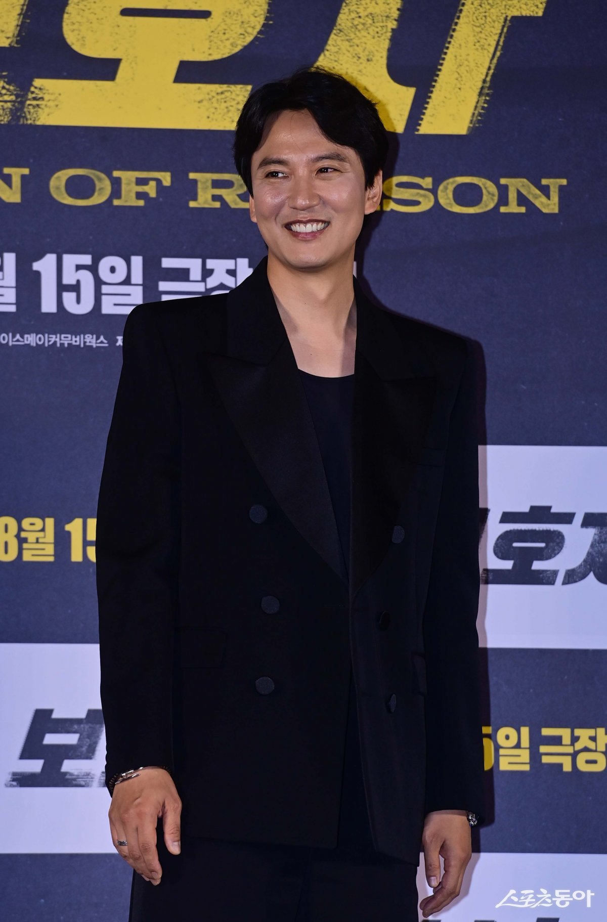 배우 김남길이 24일 서울 용산구 CGV용산아이파크몰점에서 열린 영화 ‘보호자’ 제작보고회에서 포즈를 취하고 있다.