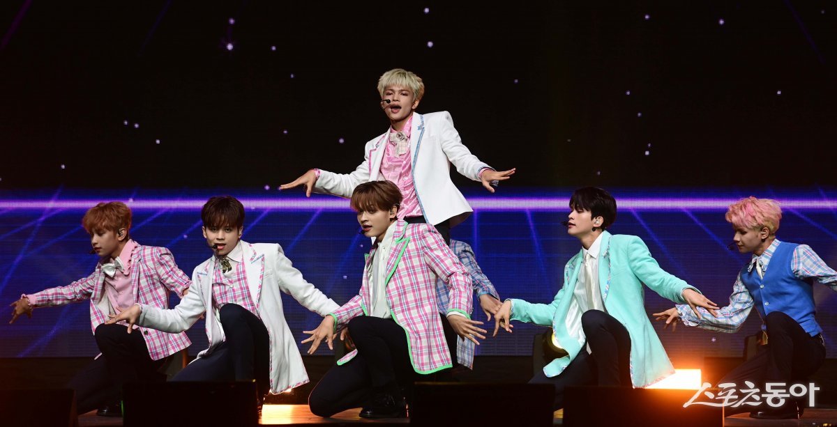 그룹 호라이즌이 24일 서울 송파구 방이동 올림픽공원 올림픽홀에서 열린 데뷔 앨범 ‘Friend-SHIP(프렌드-십)’ 프레스 쇼케이스에서 타이틀곡 ‘SIX7EEN(식스틴)’ 무대를 펼치고 있다.