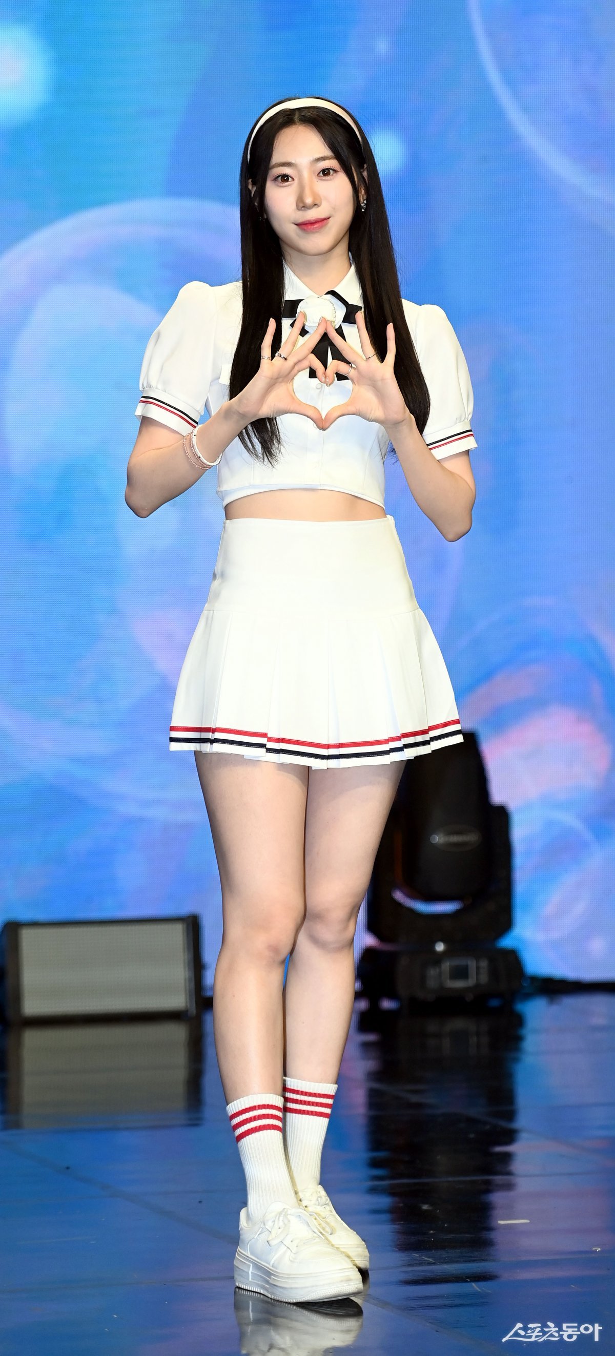 걸그룹 아일리원(ILY:1) 엘바가 25일 서울 강남구 일지아트홀에서 진행된 두 번째 미니앨범 ‘뉴 챕터’(New Chapter)‘ 발매 쇼케이스에서 포토타임을 갖고 있다.