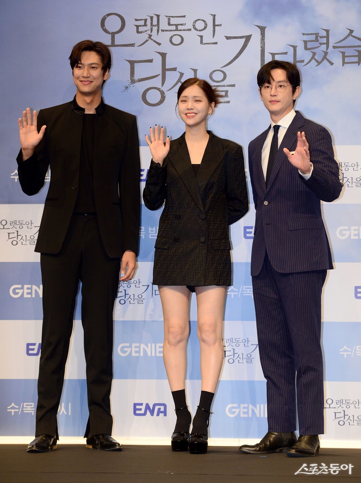 배우 나인우, 김지은, 권율이 26일 서울 구로구 더 세인트에서 열린 ENA 새 수목드라마 ‘오랫동안 당신을 기다렸습니다’ 제작발표회에서 포토타임을 갖고 있다.