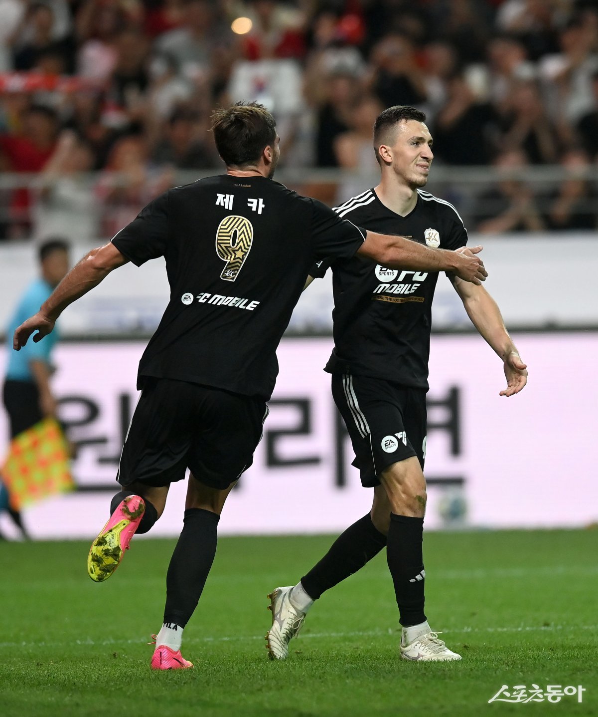 쿠팡플레이 시리즈 1차전 팀 K리그와 아틀레티코 마드리드 경기가 27일 서울월드컵 경기장에서 열렸다. 팀 K리그 안톤이 동점골을 성공시킨 후 기뻐하고 있다.