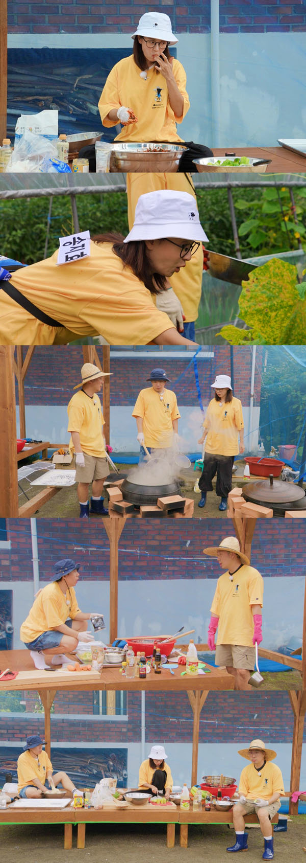 제작진에 따르면 조리 레시피를 받은 송지효는 “오이소박이는 금방 하지 않아요? 어떻게 해요?”라며 모두를 당황시켰는데, 이후 오이 수확부터 오이 손질을 모두 도맡아 해 산더미 같은 오이 산을 만들어 ‘큰손 지효’의 명성을 이어가는가 하면, 소금을 봉지 째 들이붓는 ‘소금 샤워’를 보여줘 현장을 발칵 뒤집었다.