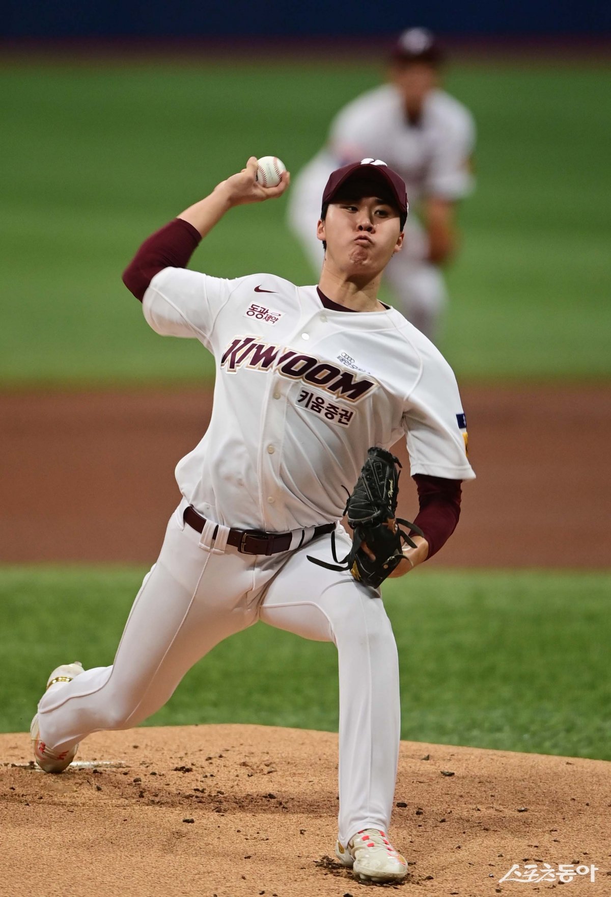 30일 서울 고척스카이돔에서 열린 ‘2023 신한은행 SOL KBO리그’ 키움 히어로즈와 삼성 라이온즈의 경기에서 선발 투수로 마운드에 오른 키움 장재영이 역투하고 있다.