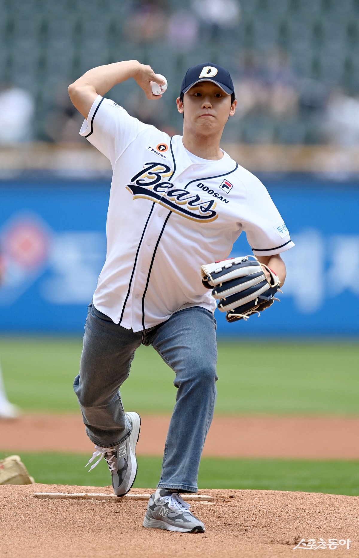 30일 서울 잠실야구장에서 ‘2023 신한은행 SOL KBO리그’ LG 트윈스와 두산 베어스 경기가 열렸다. 배우 이도현이 시구를 하고 있다.