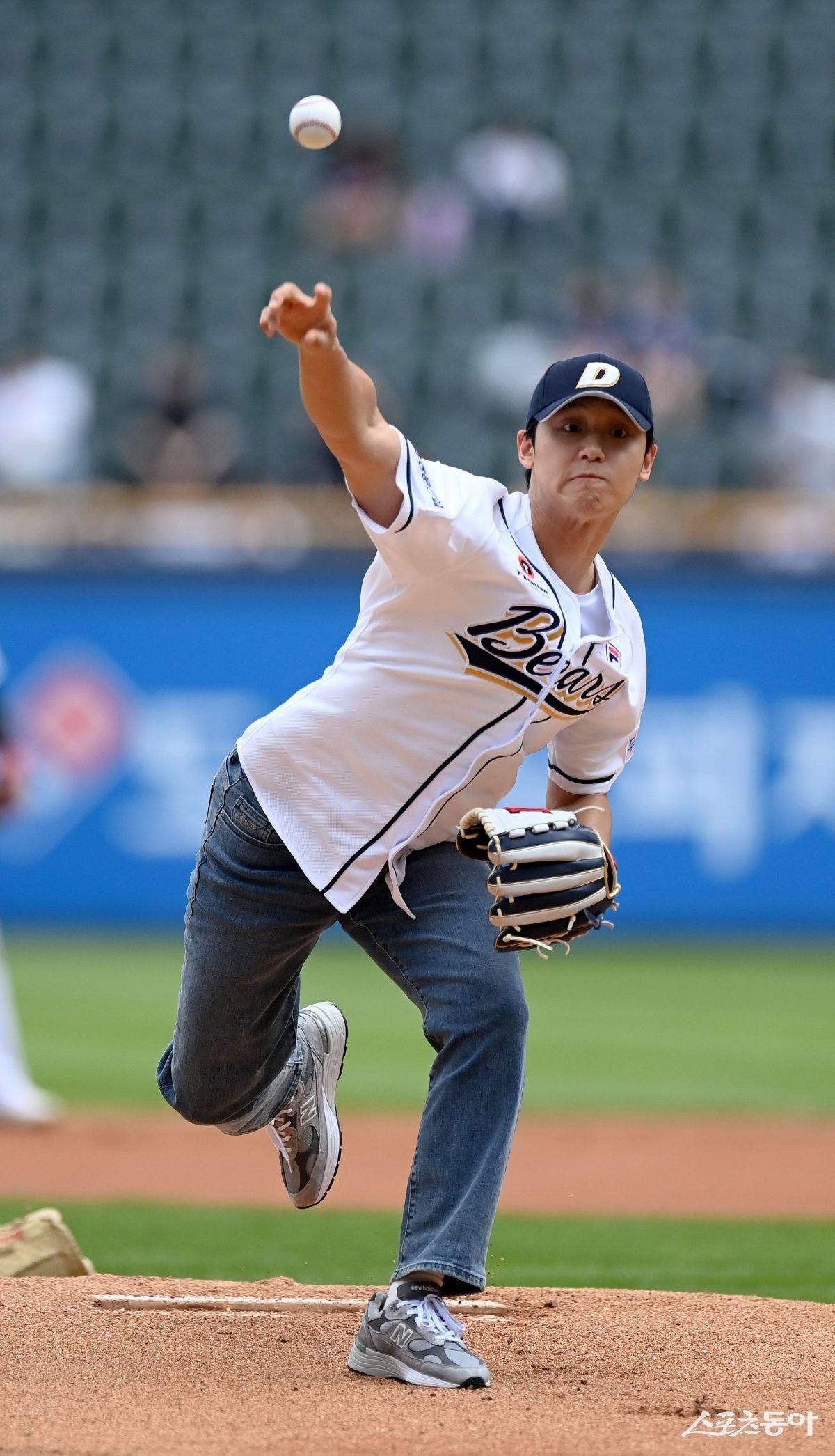 30일 서울 잠실야구장에서 ‘2023 신한은행 SOL KBO리그’ LG 트윈스와 두산 베어스 경기가 열렸다. 배우 이도현이 시구를 하고 있다.