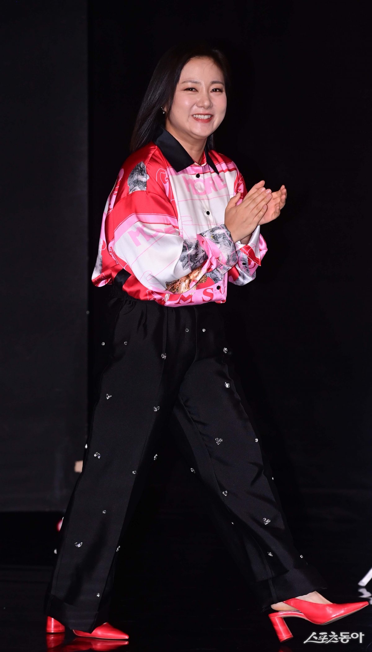 코미디언 박나래가 31일 서울 마포구 상암동 MBC본사 골든마우스홀에서 열린 MBC 새 예능프로그램 ‘빈집살래 시즌3-수리수리 마을수리’ 제작발표회 무대에 오르고 있다.