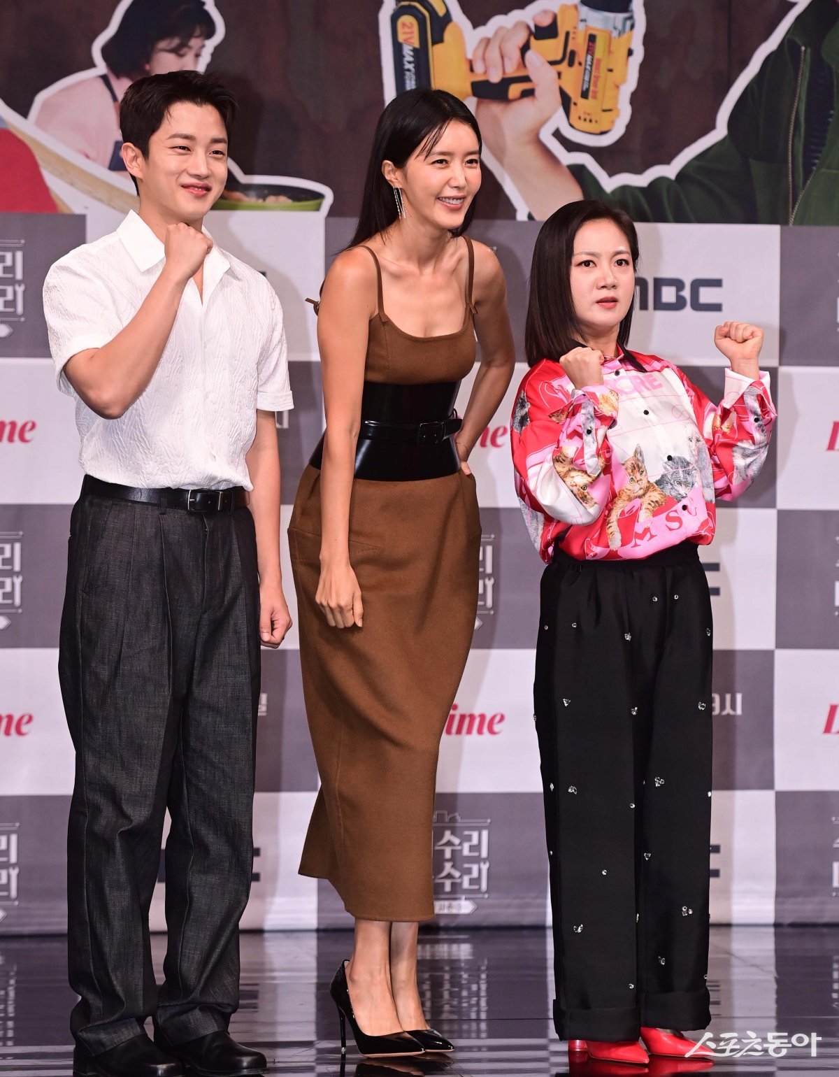 배우 김민석, 채정안, 코미디언 박나래가 31일 서울 마포구 상암동 MBC본사 골든마우스홀에서 열린 MBC 새 예능프로그램 ‘빈집살래 시즌3-수리수리 마을수리’ 제작발표회에서 포즈를 취하고 있다.