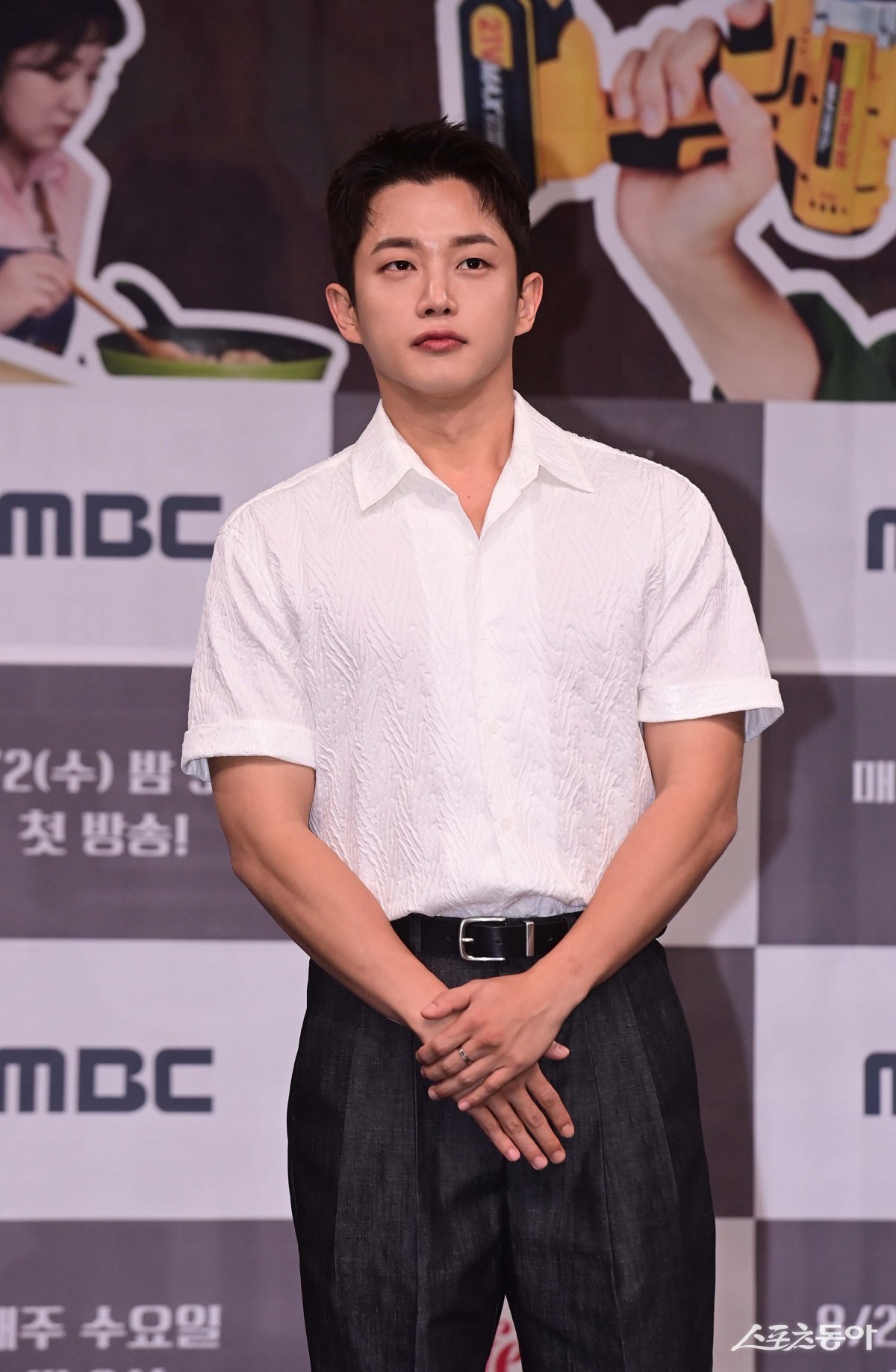 배우 김민석이 31일 서울 마포구 상암동 MBC본사 골든마우스홀에서 열린 MBC 새 예능프로그램 ‘빈집살래 시즌3-수리수리 마을수리’ 제작발표회에서 포즈를 취하고 있다.