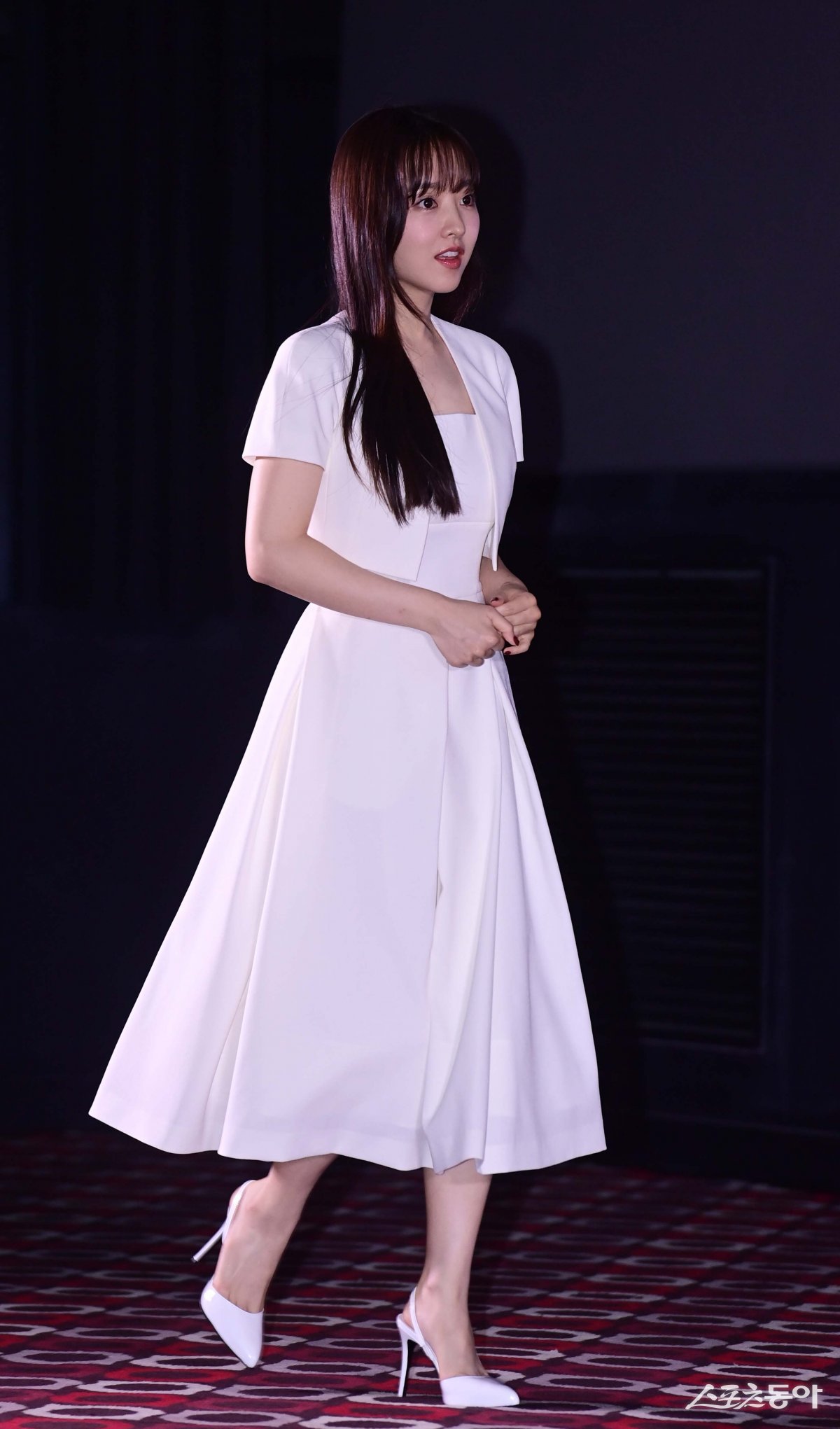 배우 박보영이 31일 서울 송파구 신천동 롯데시네마 월드타워점에서 열린 영화 ‘콘크리트 유토피아’ 언론시사회 무대에 오르고 있다.