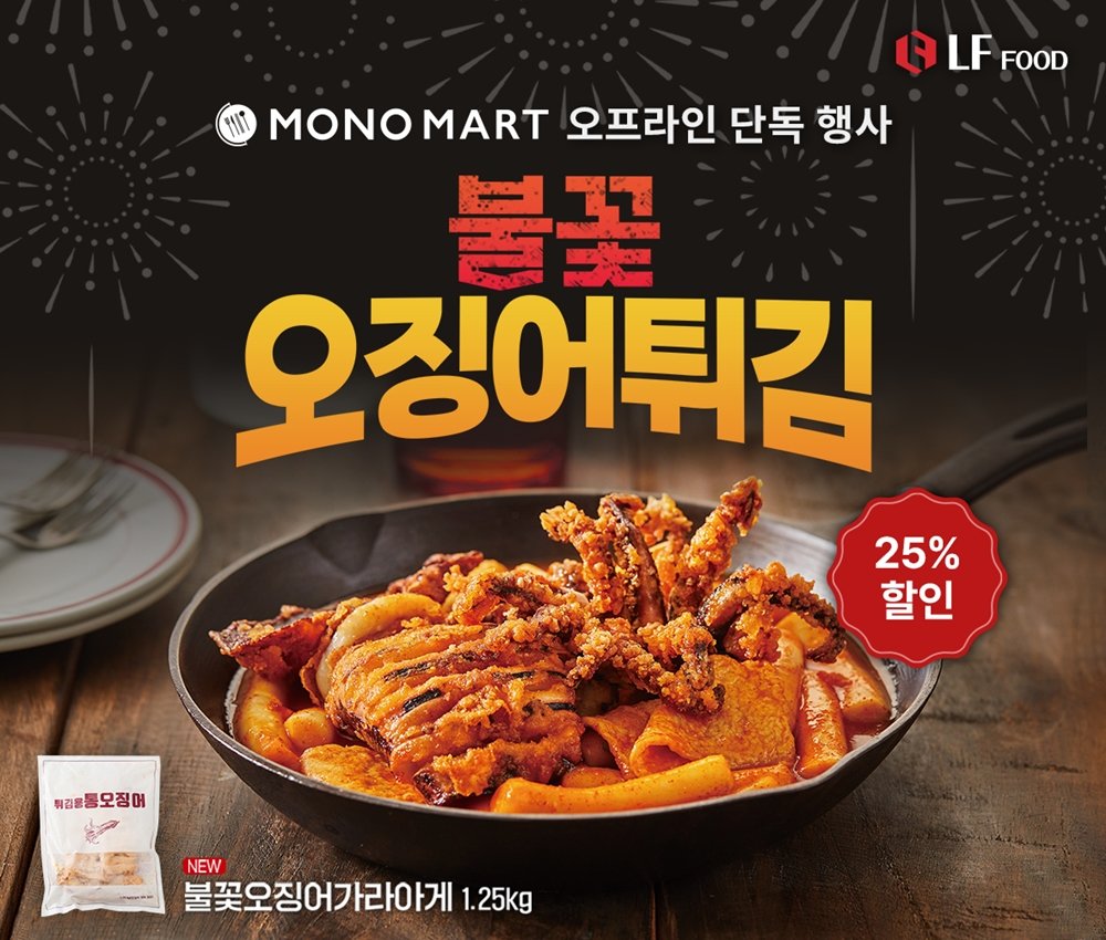 LF푸드의 식자재 마켓 모노마트가 31일까지 불꽃 오징어튀김 오프라인 단독 기획전을 연다.