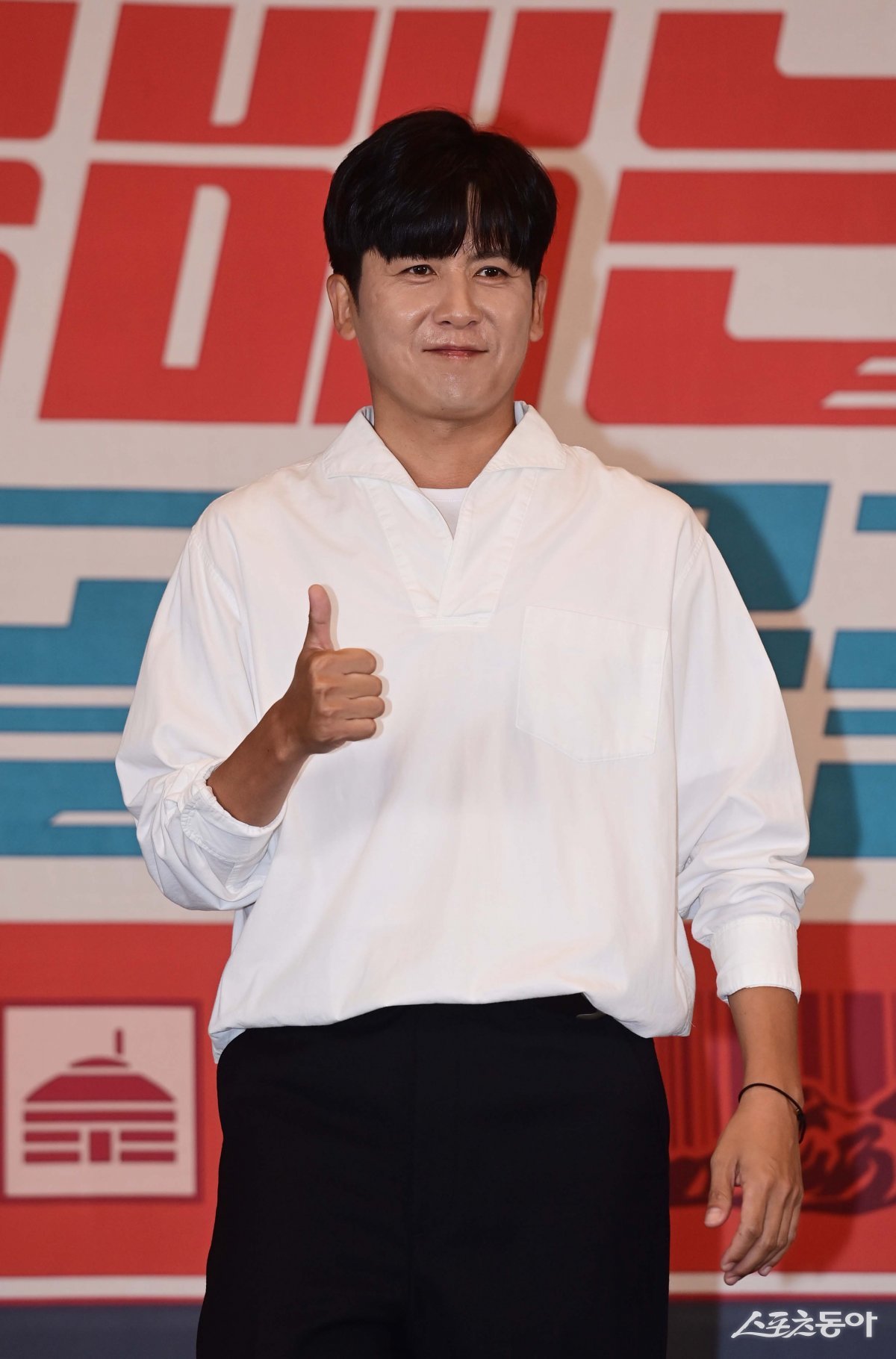 가수 홍경민이 2일 서울 서초구 잠원동 더 리버사이드 호텔에서 열린 JTBC 새 예능프로그램 ‘택배는 몽골몽골’ 제작발표회에서 포즈를 취하고 있다.