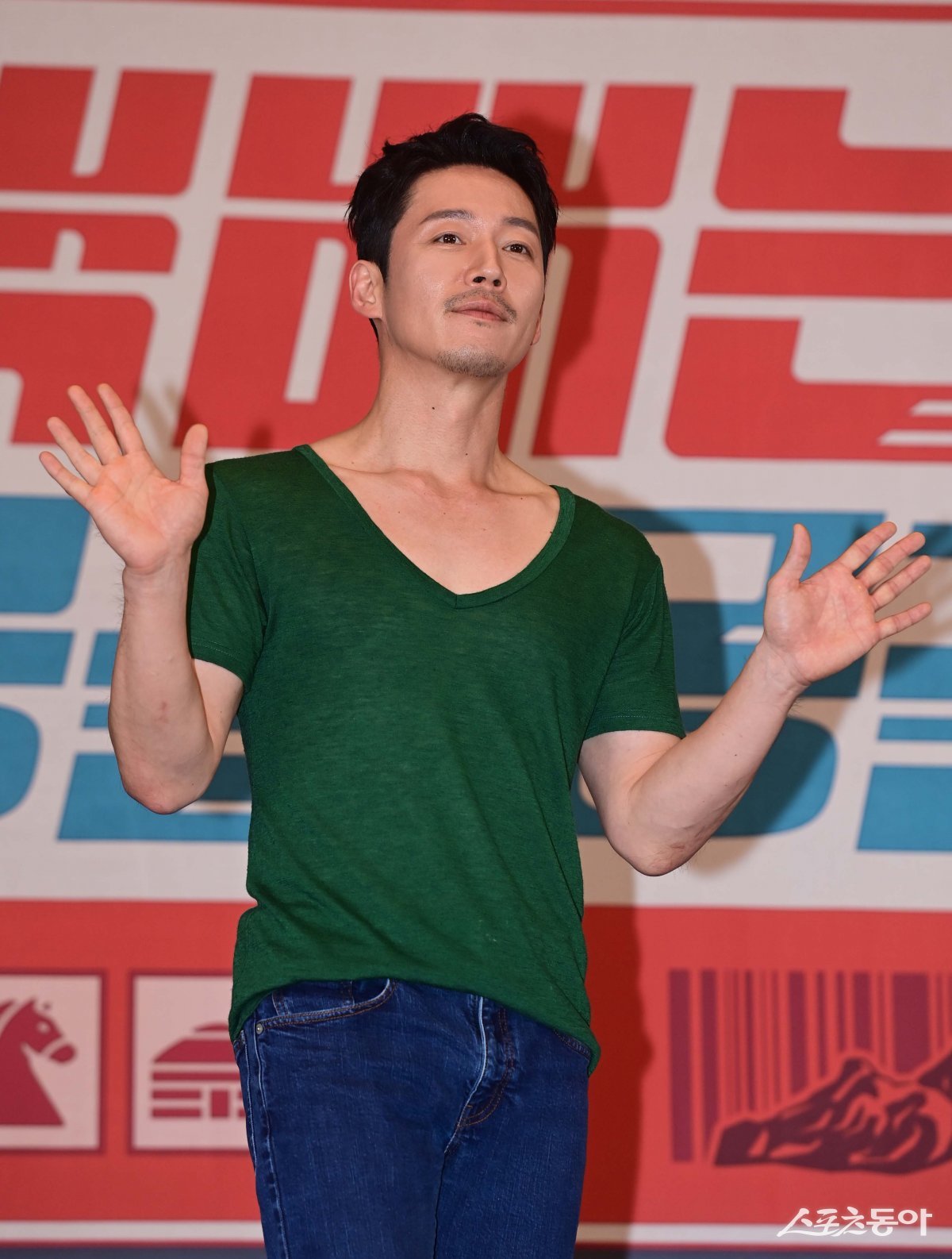 배우 장혁이 2일 서울 서초구 잠원동 더 리버사이드 호텔에서 열린 JTBC 새 예능프로그램 ‘택배는 몽골몽골’ 제작발표회에서 포즈를 취하고 있다.