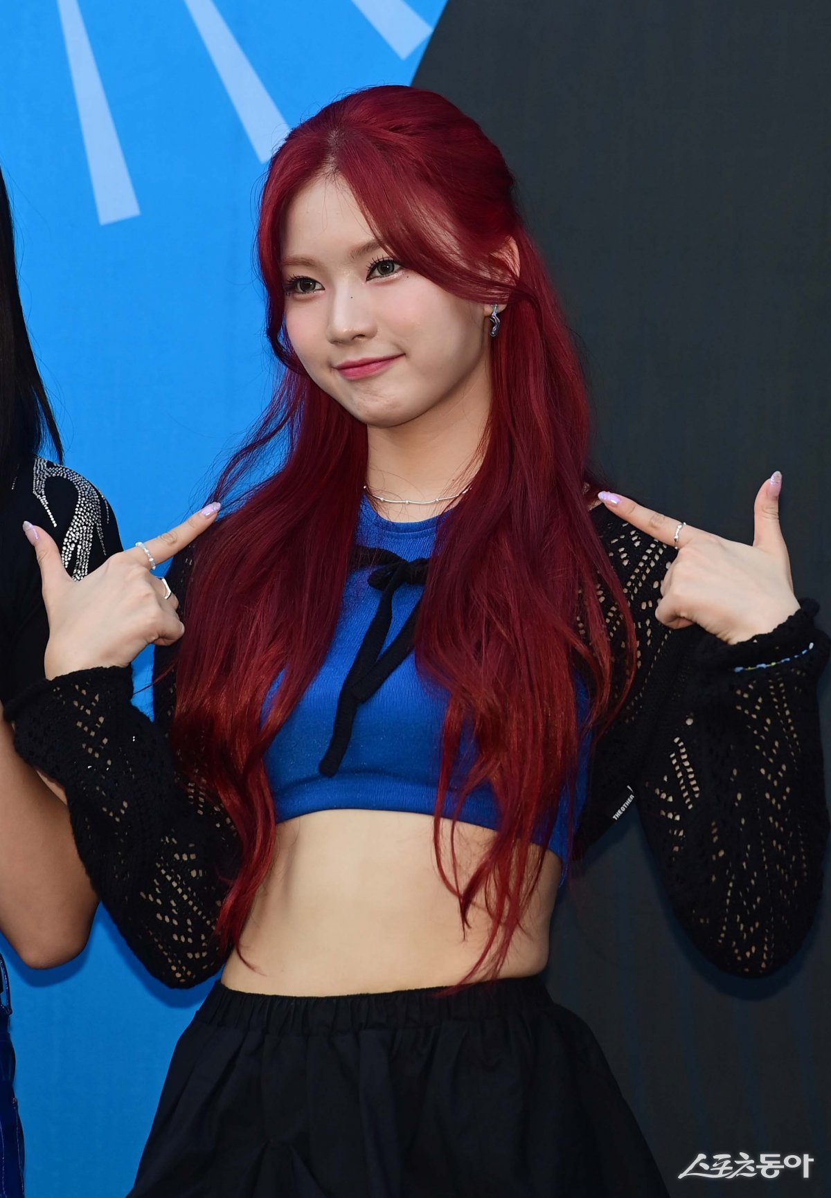 스테이씨 아이사가 3일 서울 잠실실내체육관에서 열린 ‘펩시 썸머 페스타 2023’ 블루카펫에서 포즈를 취하고 있다.
