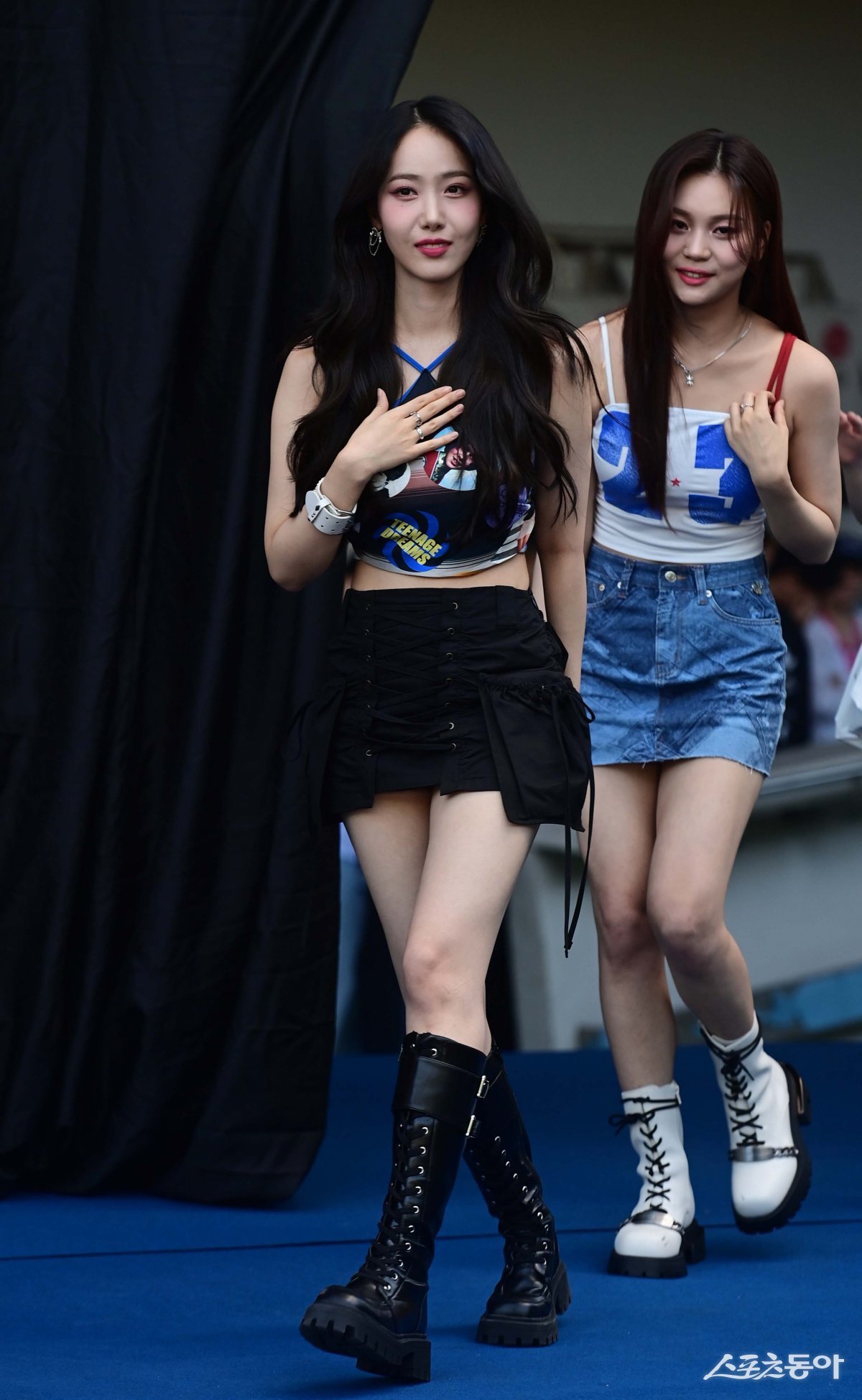 비비지 신비가 3일 서울 잠실실내체육관에서 열린 ‘펩시 썸머 페스타 2023’ 블루카펫에 오르고 있다.