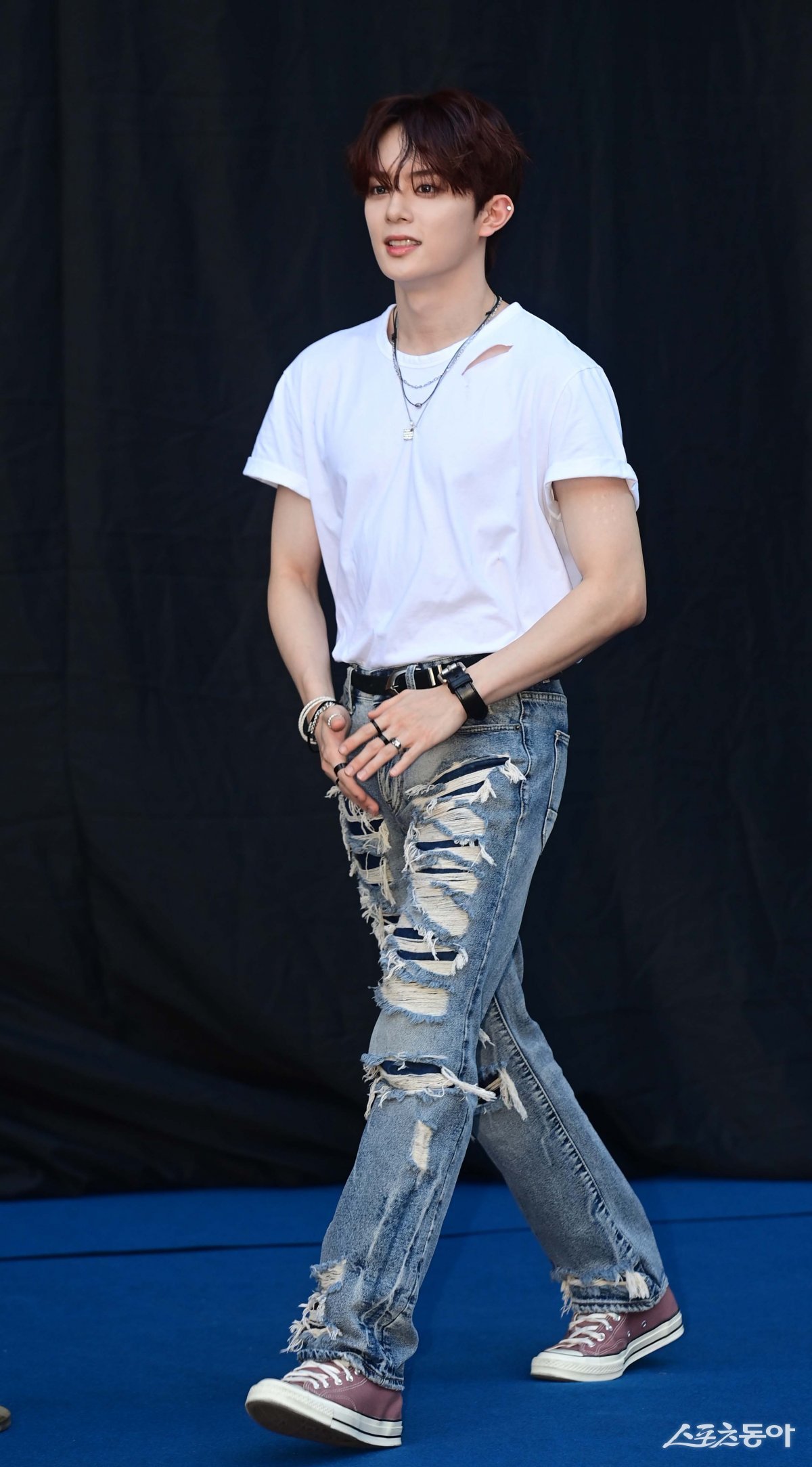 베리베리 강민이 3일 서울 잠실실내체육관에서 열린 ‘펩시 썸머 페스타 2023’ 블루카펫에 오르고 있다.